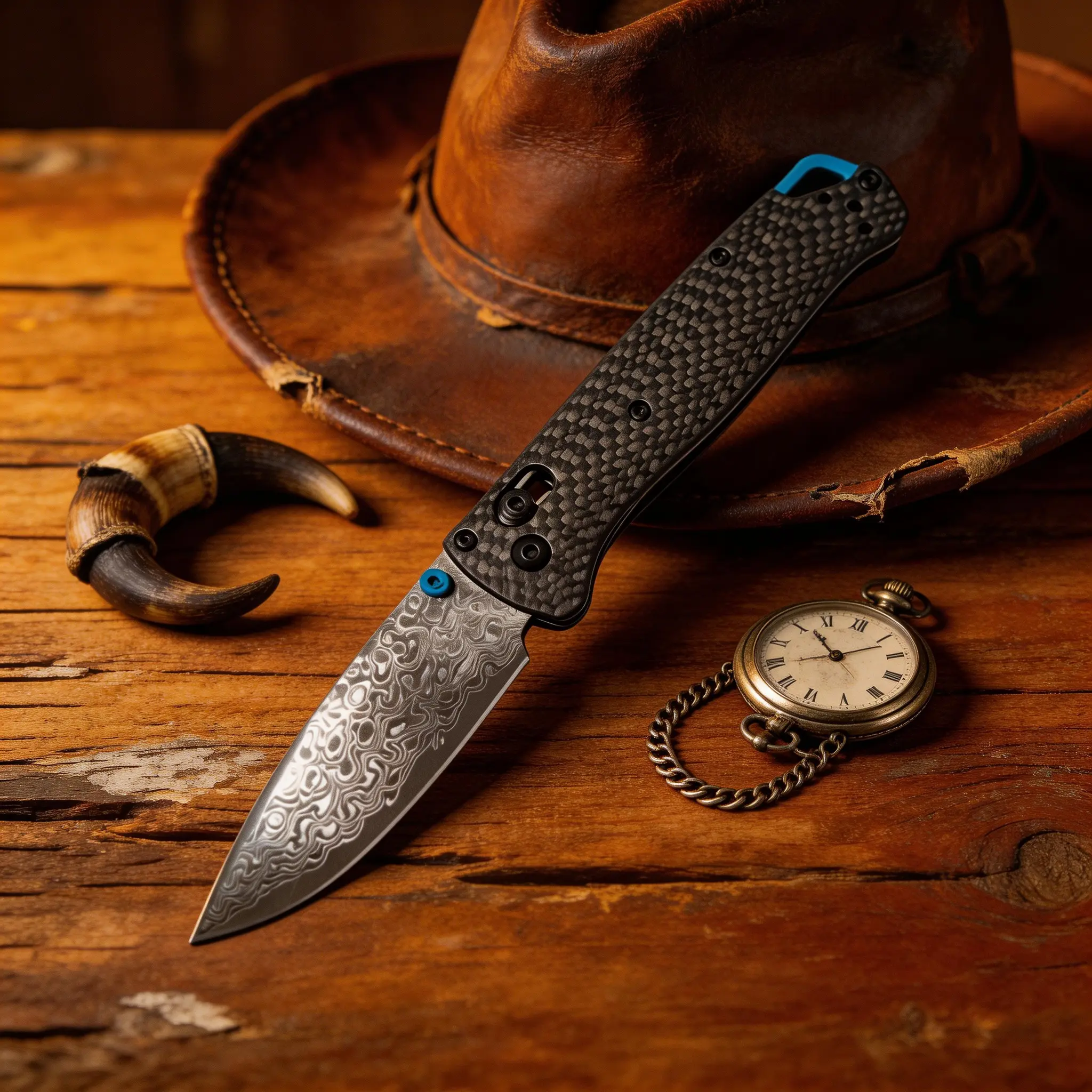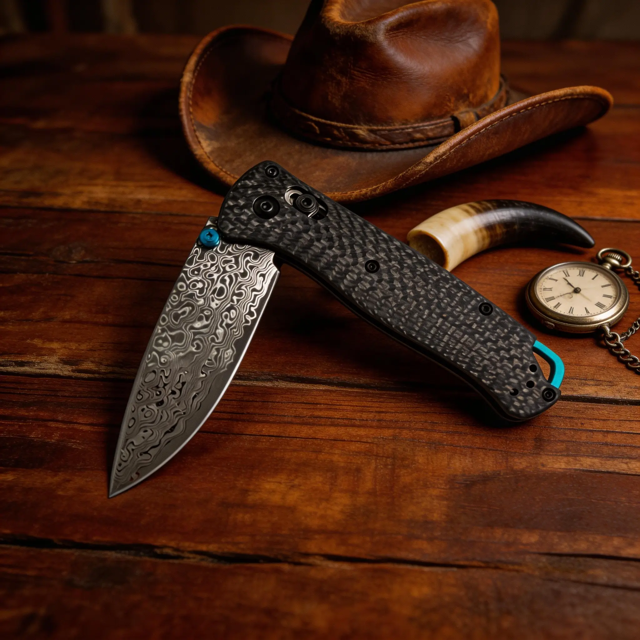 This ultra-light EDC folding knife combines premium craftsmanship with outstanding everyday performance. It features a 3.24" satin-finish Damascus steel drop-point blade, displaying unique forged grain patterns that provide exceptional durability, sharpness, and cutting precision. The contoured carbon fiber handle with nested steel liners provides an ergonomic, secure grip for all-day use.