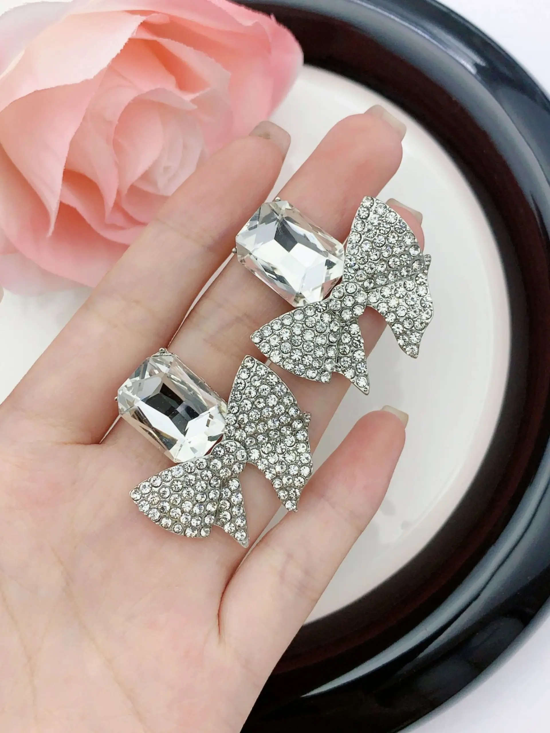 Elegant Bow Rhinestone Earrings, Luxury High-End Bow Earrings, Full Rhinestones Studs, European Style Ear Jewelry for Women