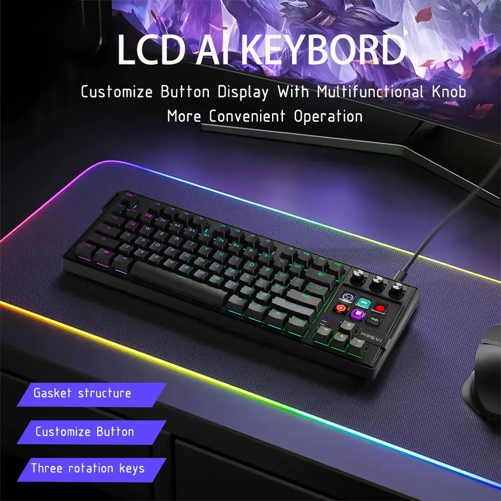 78 Key Wired Gaming Keyboard with Stream Deck, 6 LCD Shortcut Keys, 3 Knobs, RGB Backlit, Switch, Hot Swappable for Obs Twitch