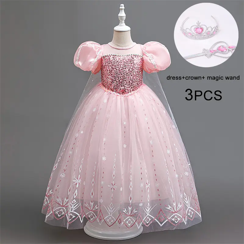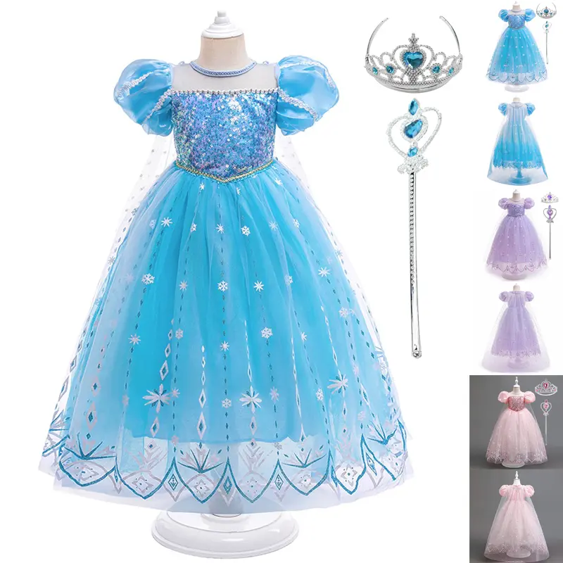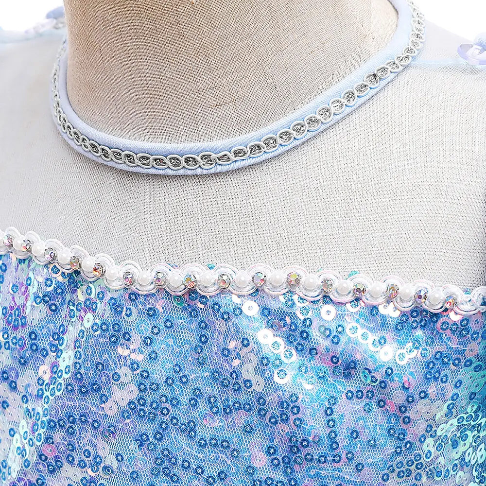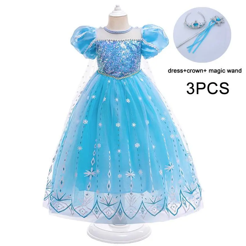 2-10Y Blue with Crown Magic Wand 1751 Cartoon Cosplay Costume Fancy Carnival Tulle Sequin Kids Clothes Princess Girls Ball Gown Children Cocktail Dress