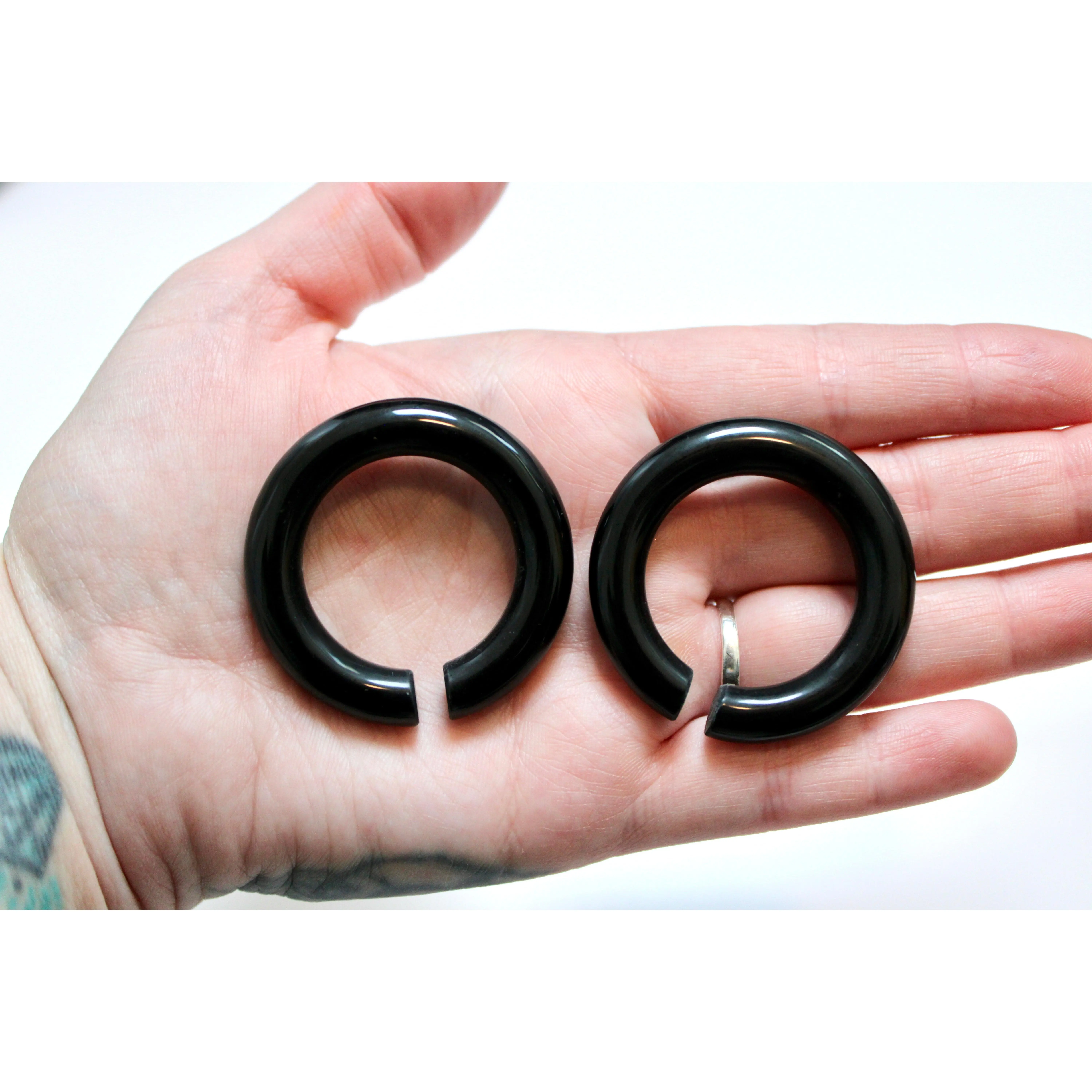 Obsidian Black Hoops – Pair of Polished Stone Ear Weights for Stretched Ears