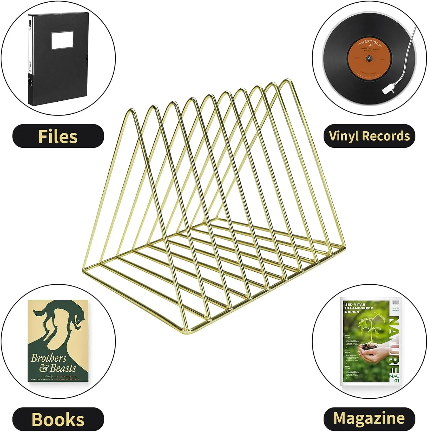·【DURABLE & STURDY FILE HOLDER】This triangle record display holders are made of high quality metal, which is very durable, sturdy and rust-resistant. Its triangular shape provides excellent stability for storing files or vinyl records.