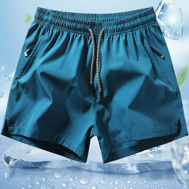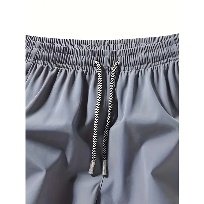 Men’s solid-color minimalist drawstring with zippered pockets; men’s -waist pocket shorts; summer men’s sports bottoms; everyday wear, suitable for spring and summer. Quick-Dry Elastic Athletic Shorts Set Casual Breathable