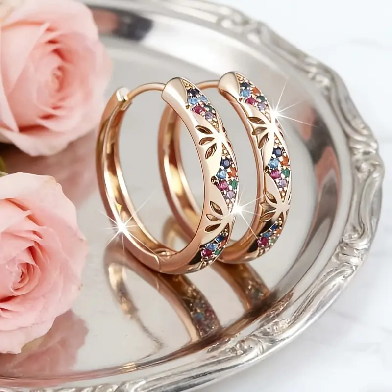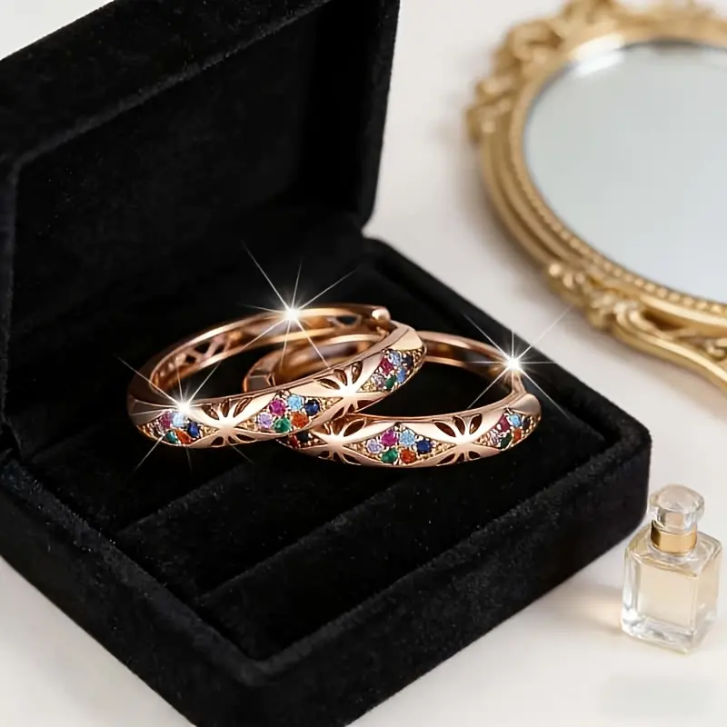 ✅Exquisite Vintage Craftsmanship:Intricate hollow leaf carvings paired with premium cubic zirconia stones (available in colorful rainbow or white) create a luxurious, eye-catching look that catches light from every angle.