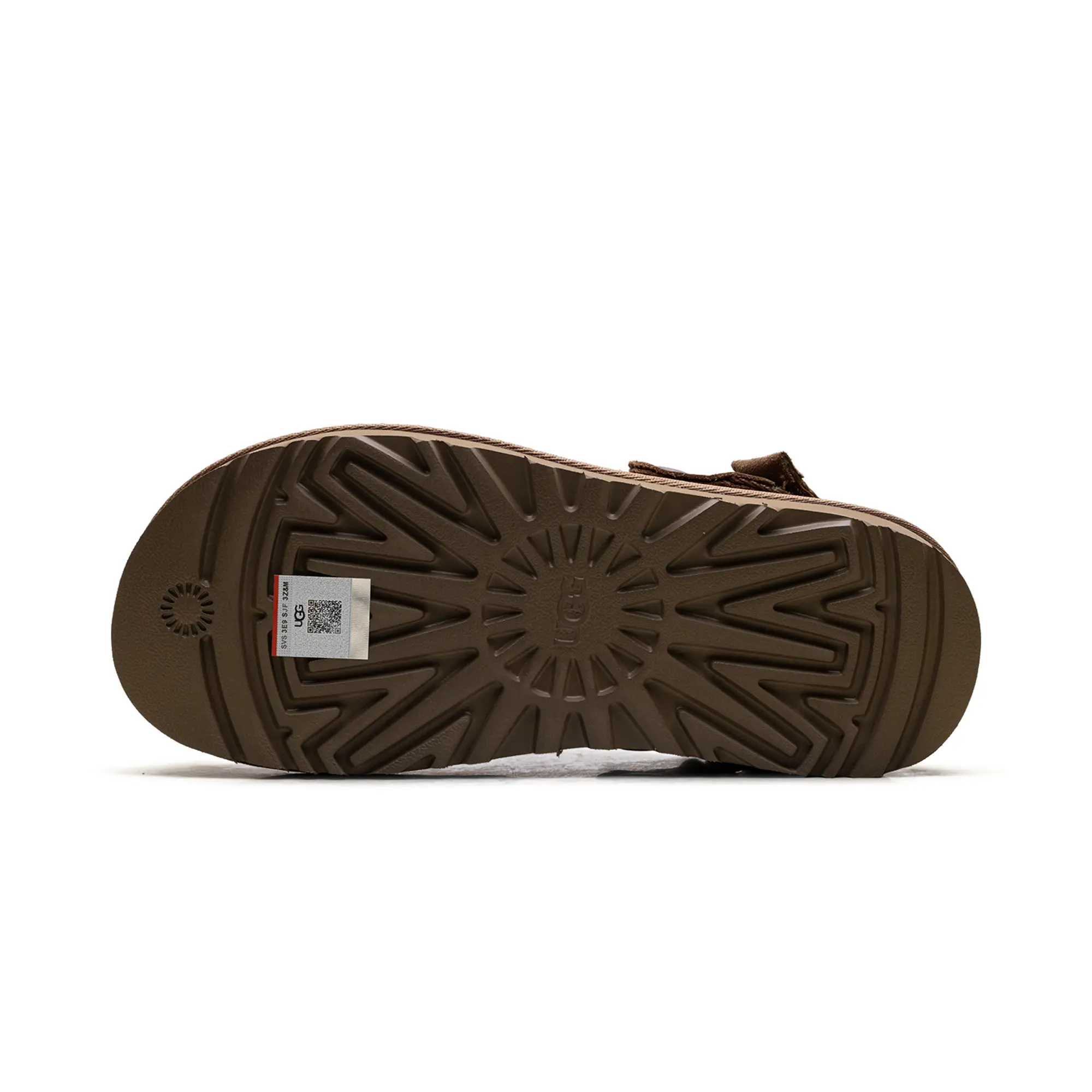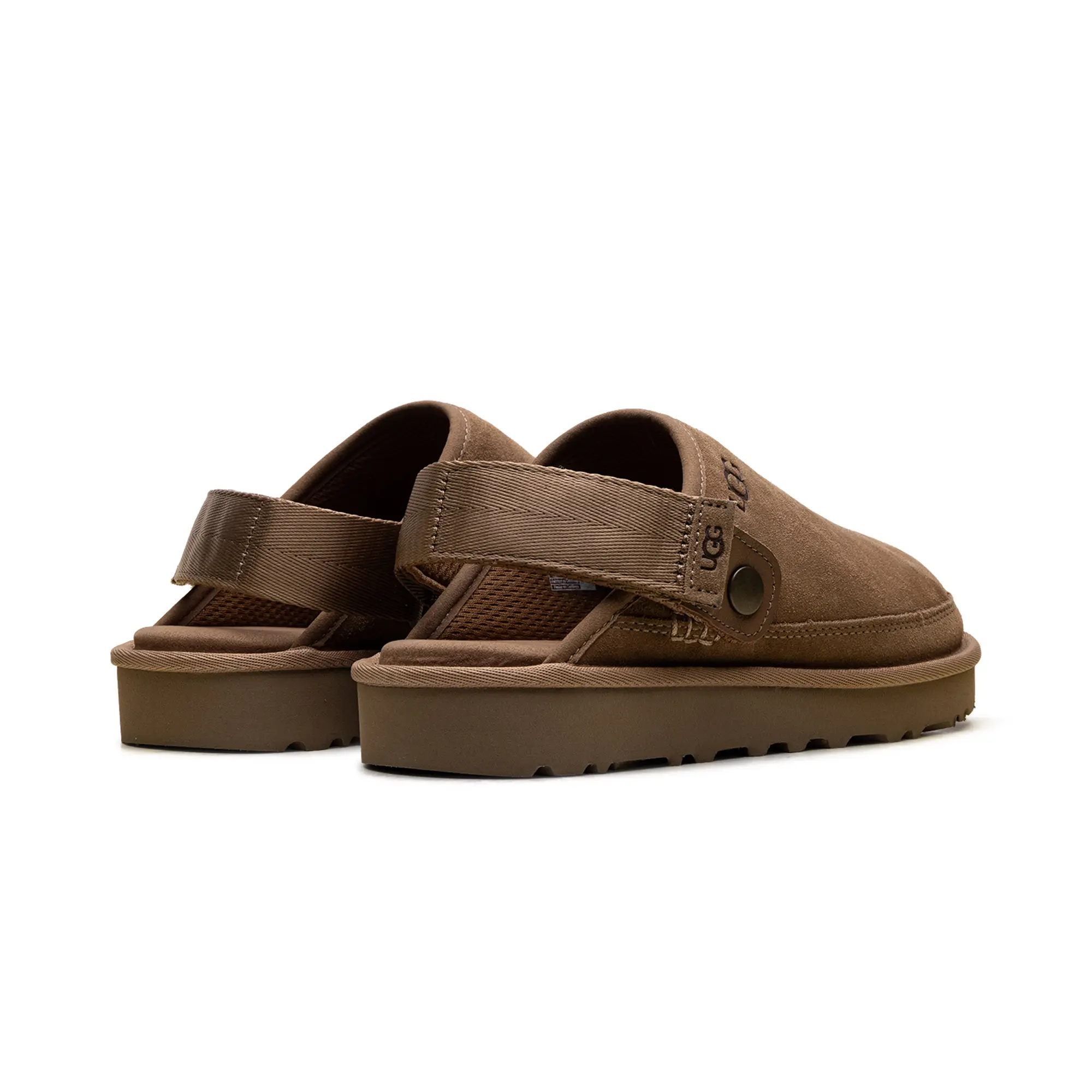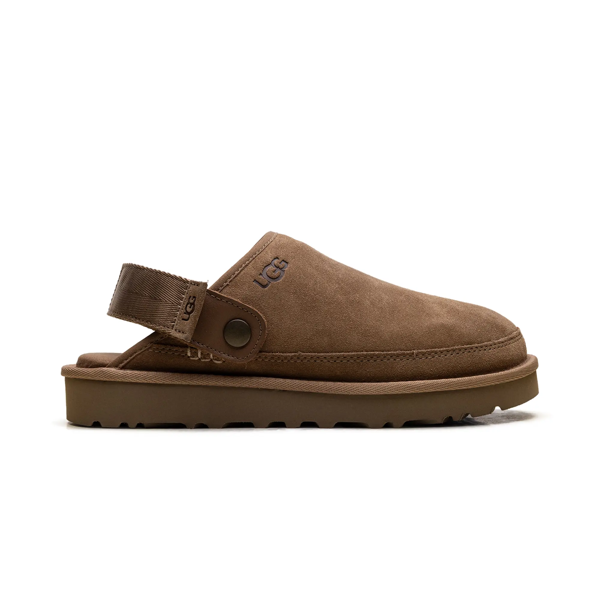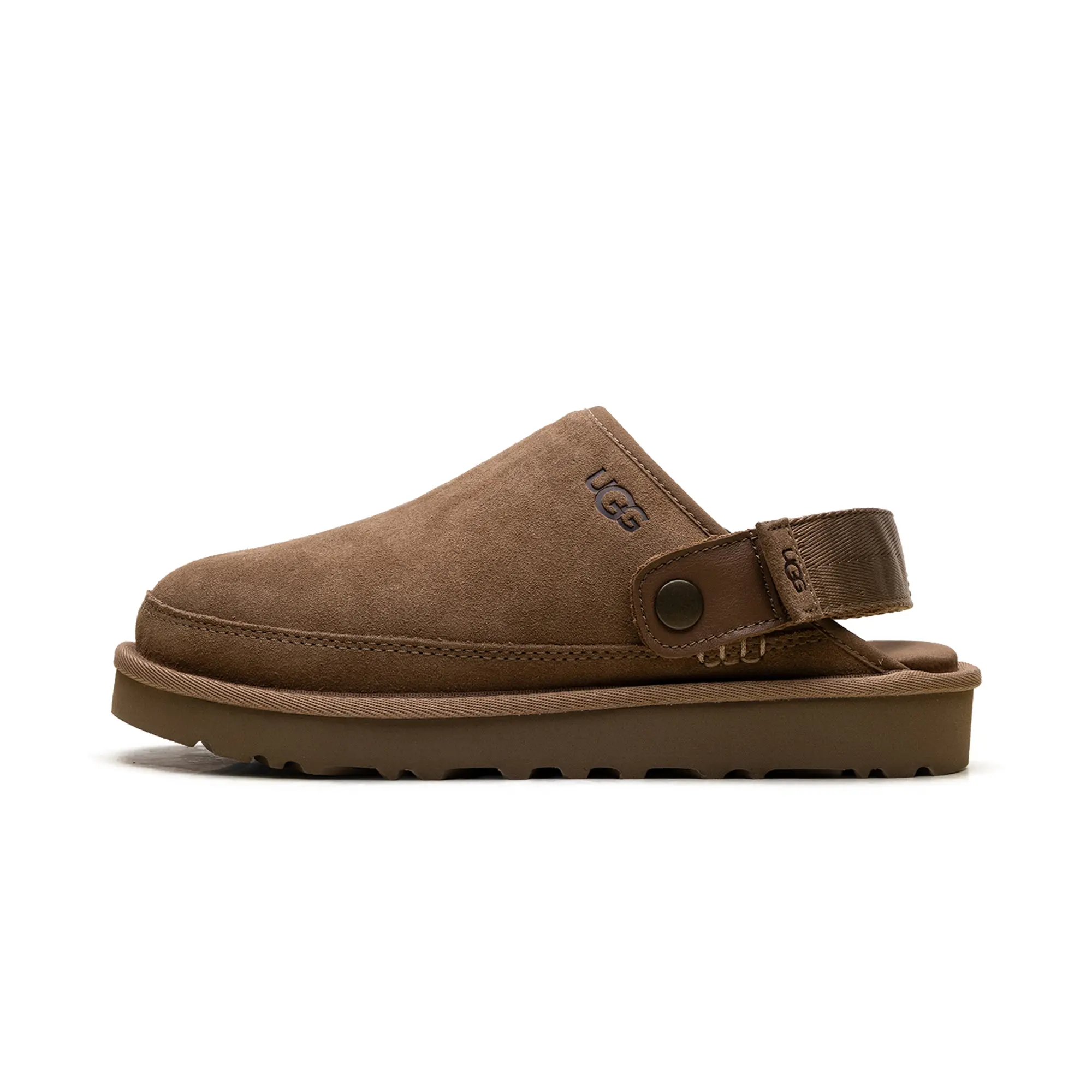 Redefine your downtime with the UGG Goldencoast Clog II "Chestnut," a high-status lifestyle silhouette that reinterprets the brand’s heritage comfort through a radical, utilitarian lens. Featuring a premium landscape of velvety "Chestnut" suede, the design is defined by its adjustable hook-and-loop heel strap and a deconstructed anatomical profile that injects a layer of modern luxury into the build. Grounded by a lightweight, sugarcane-derived SugarSole™ EVA outsole for elite daily cushioning and sustainable technicality, this release successfully pairs the timeless aesthetic of a classic clog with a sophisticated, contemporary edge.