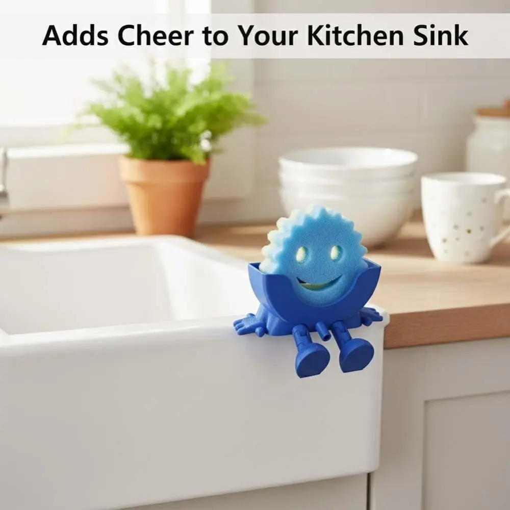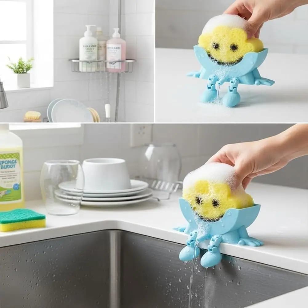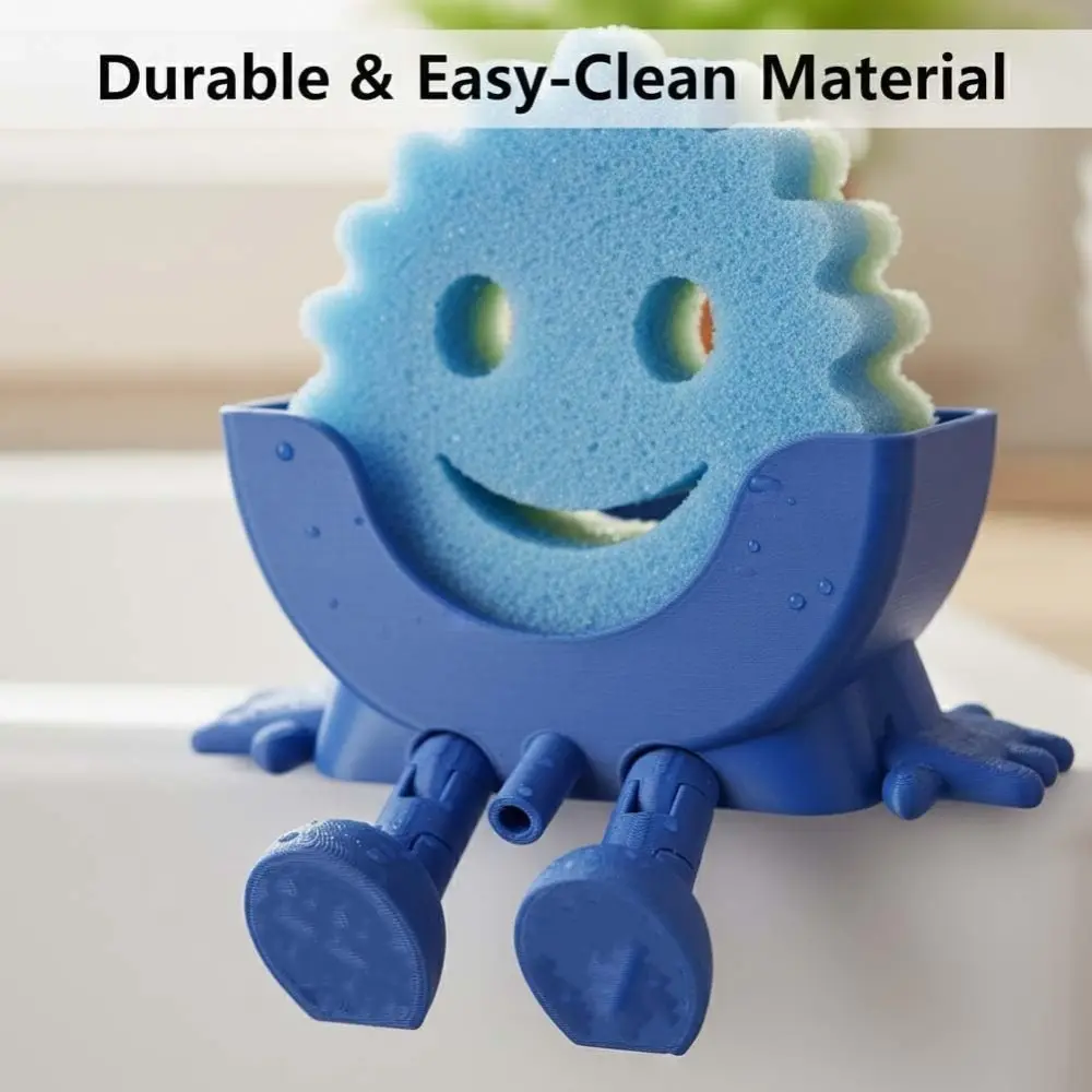 3D Printed Sponge Holder for Scrub Daddy Cute Smiley Sponge Holder with Drainage Funny Sponges Stand for Kitchen Sink Accessories Organizer Storage Utility Declutter Gadgets