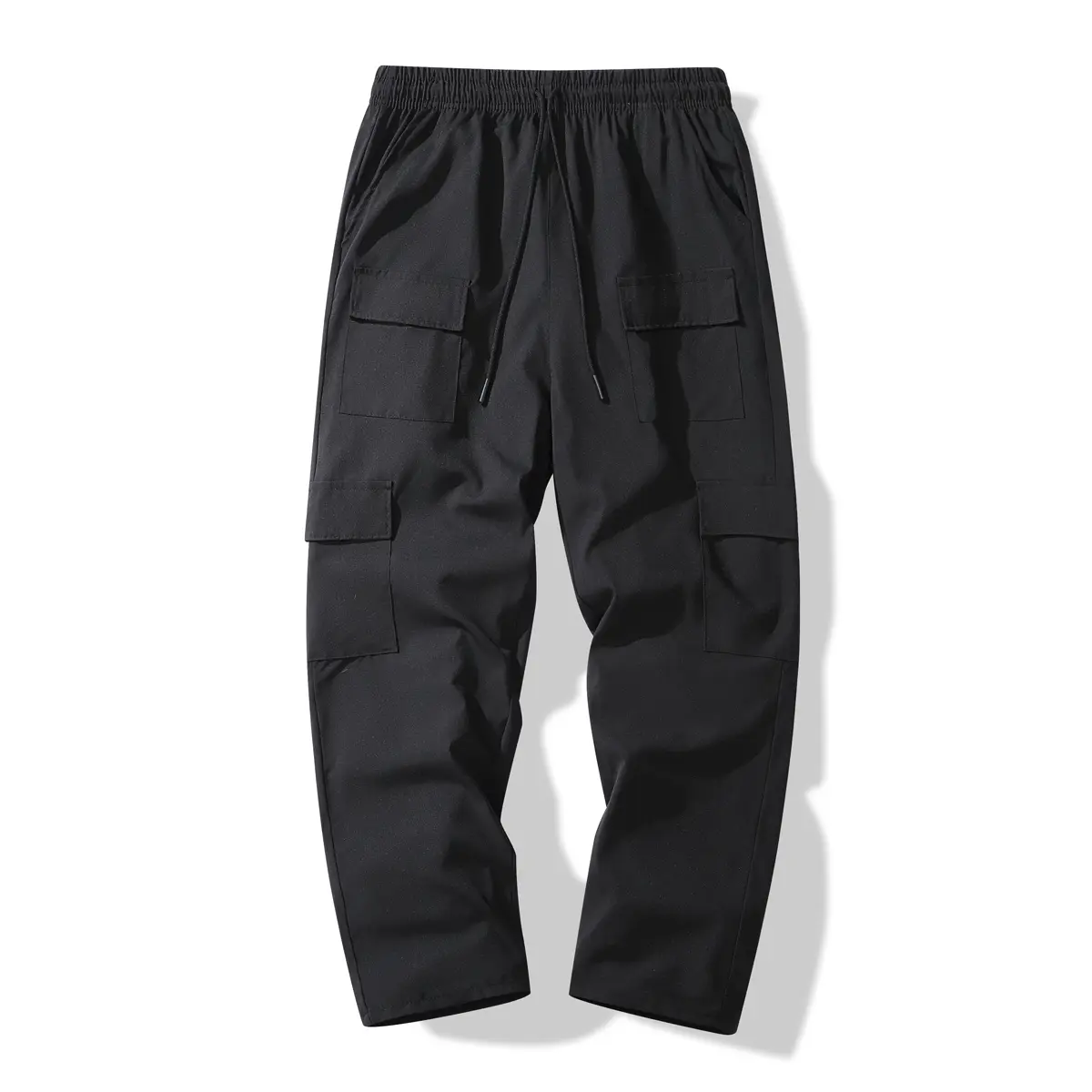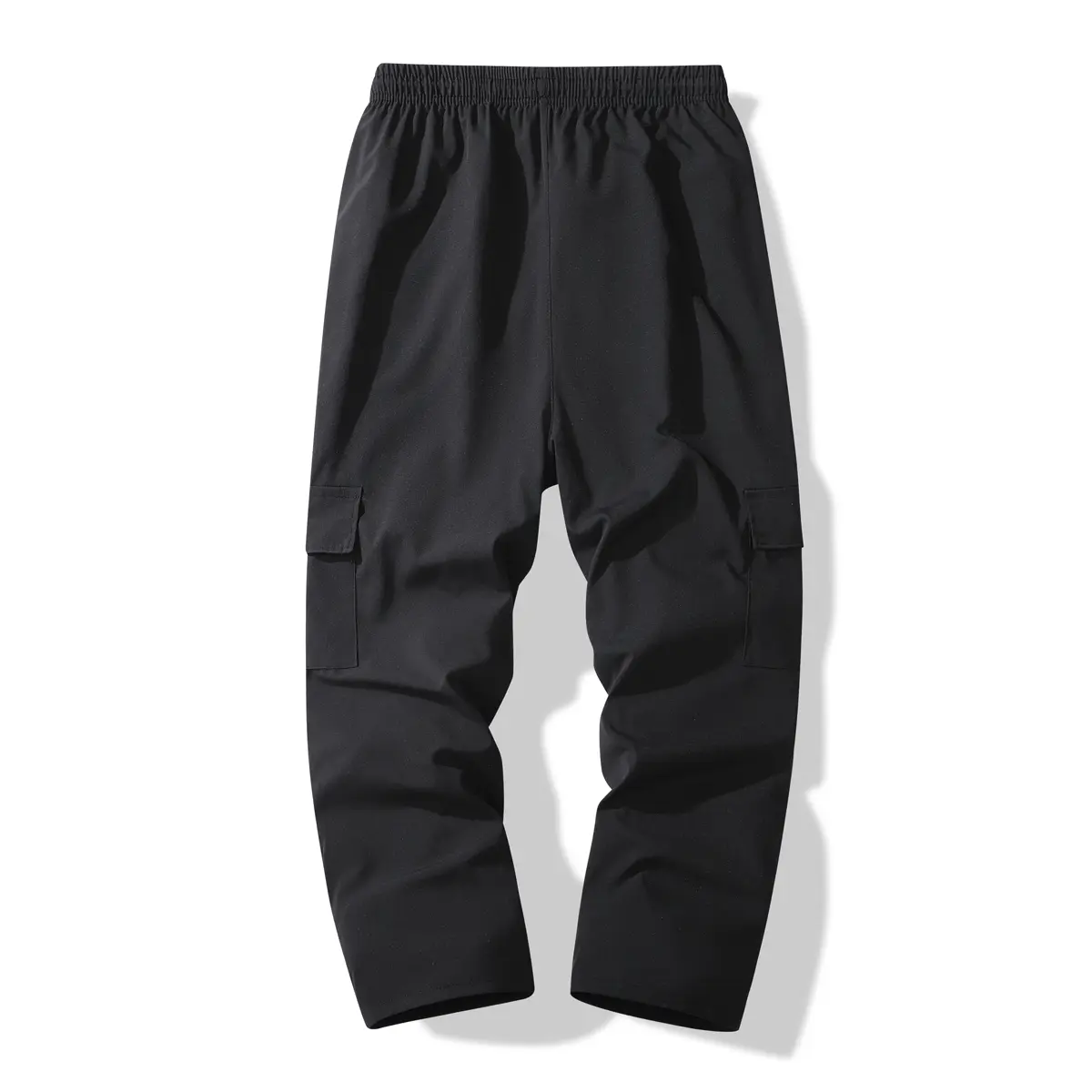 Everyday Essential Timeless Classic Mens Black Cargo Pants Casual Elastic Waist Multi Pocket Loose Fit Trousers for Casual Gatherings and Daily Life