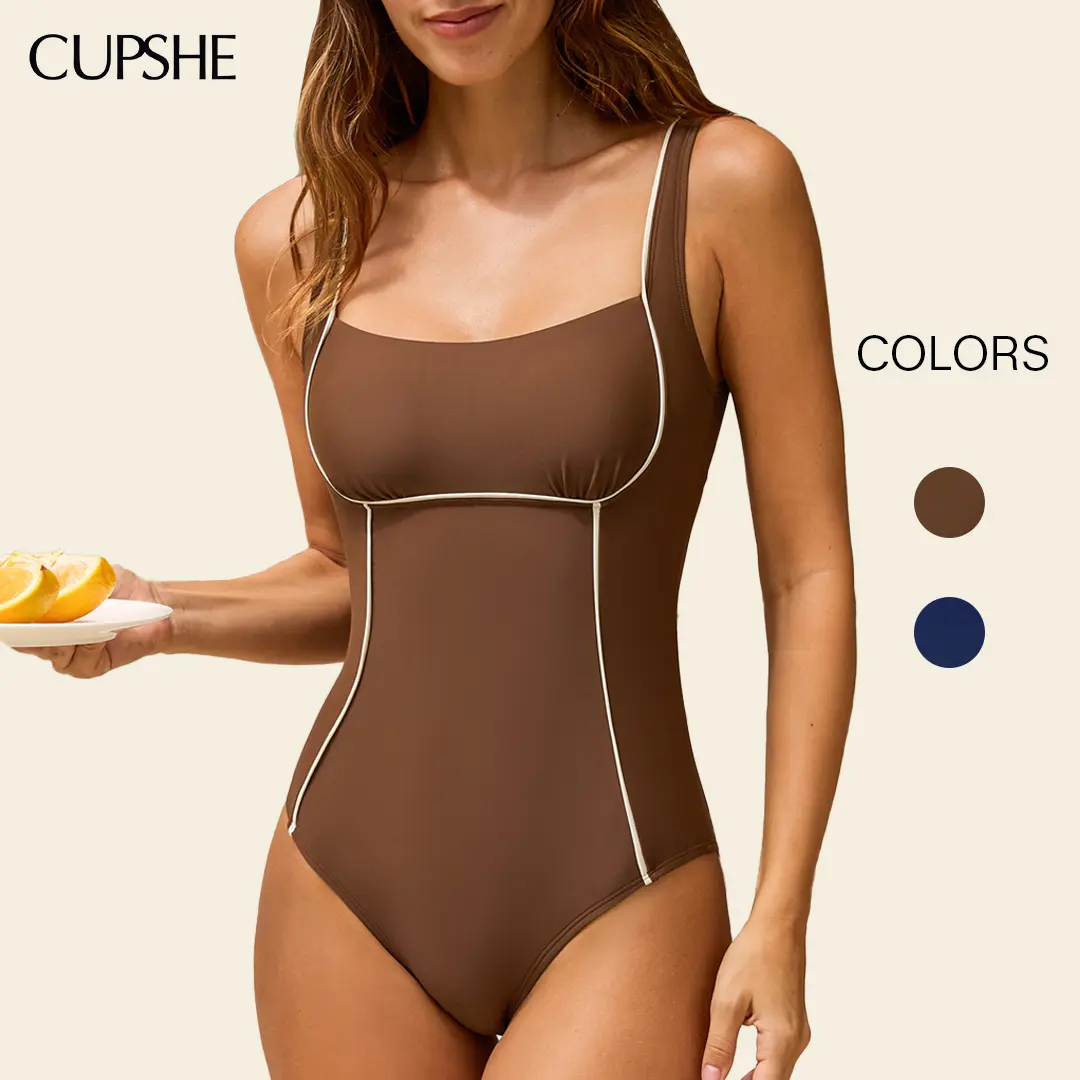 CUPSHE SCULPTING ONE PIECE Square Neck High Waist Tummy Control | Contour Seam Slimming Swimsuit & Adjustable Tie Back Open Back Design – 2026 Minimalist Body Shaping Beachwear Flattering Fit Medium Coverage Viral Pool Look