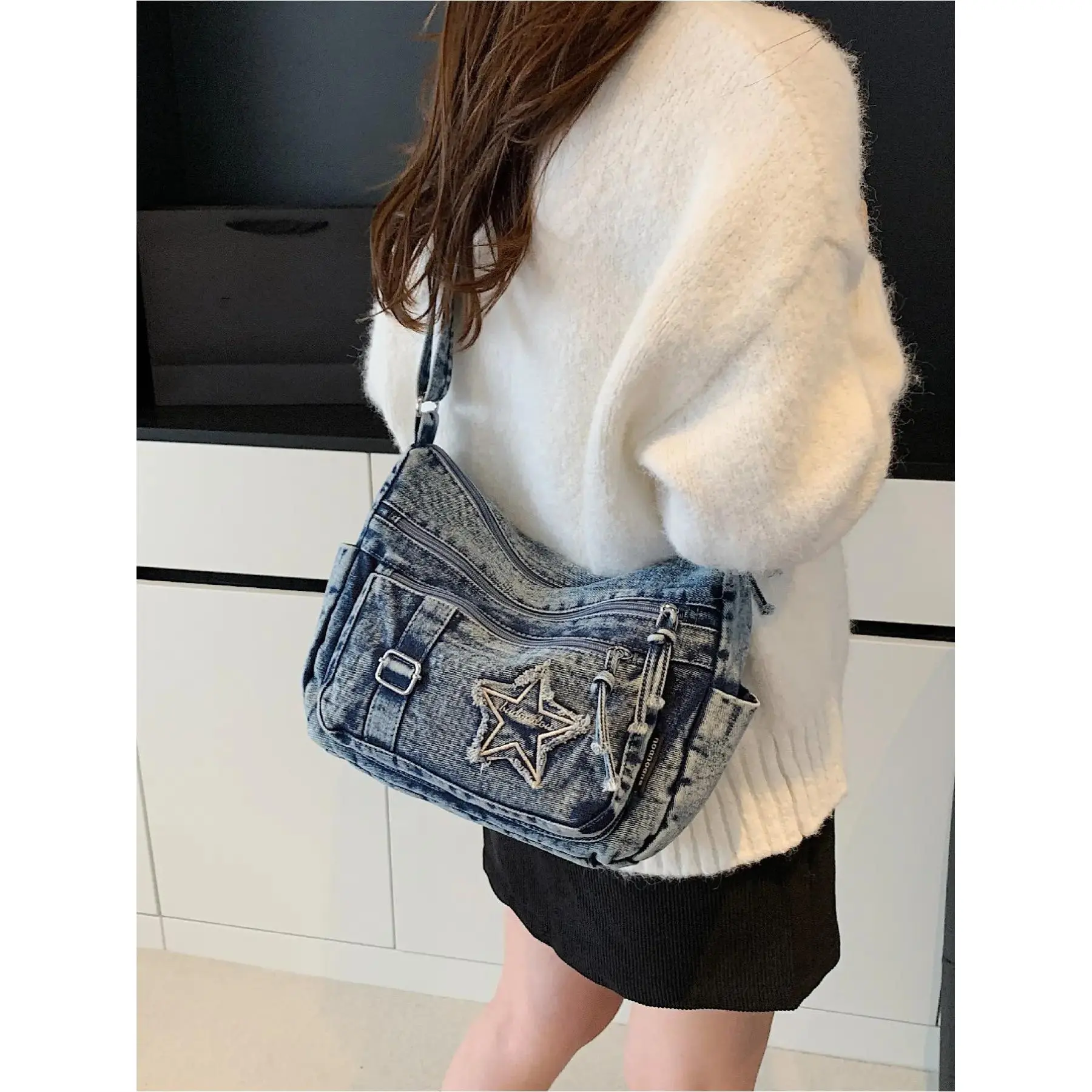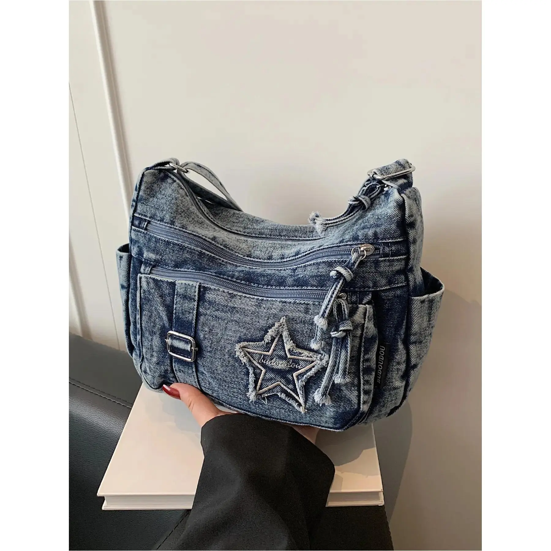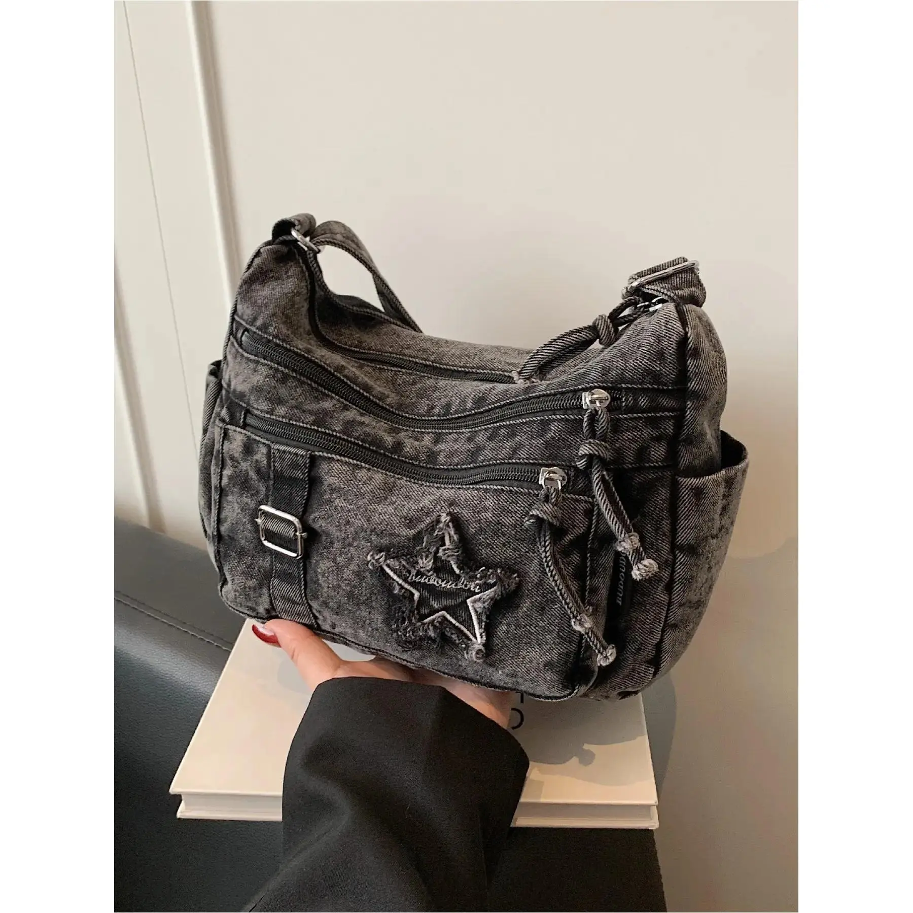 Casual and fashionable multi pocket star pattern design bag Embellished Shoulder Bag can be worn on one shoulder or diagonally