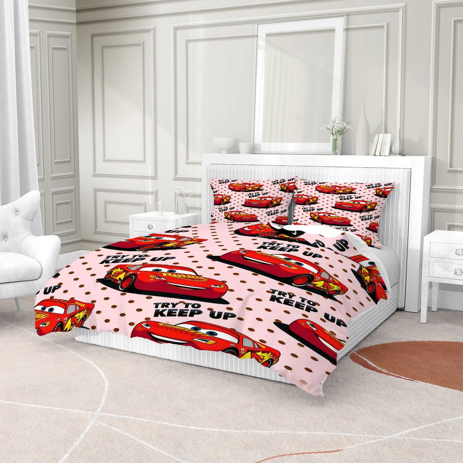 【Fun Cartoon Design】: Features a playful cartoon car pattern, adding a cheerful touch to any bedroom decor.