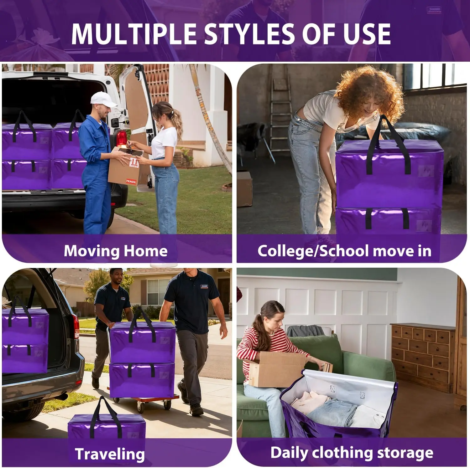 STOWM 6 Counts Heavy-Duty Extra Large Moving Bags are perfect for clothes, tools, and more. These zippered storage bags ensure your items stay safe during transit. The blue color adds a stylish touch to your storage needs. Ideal for home and office, these bags offer convenience and security.