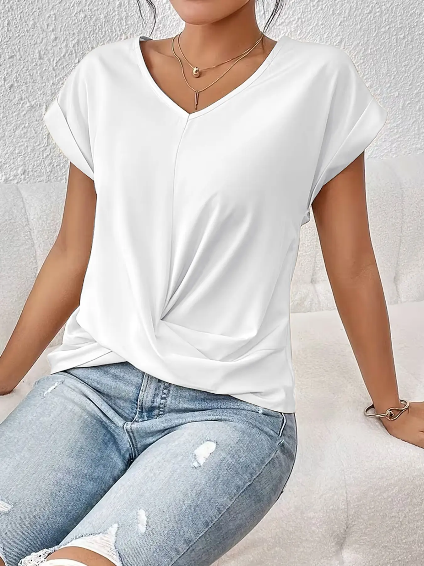 2026 Women's V Neck Twist Front Blouse, Sexy Ruched Waist, Short Sleeve, Casual Top, Tummy Control, Leg-Lengthening, Office Shirt