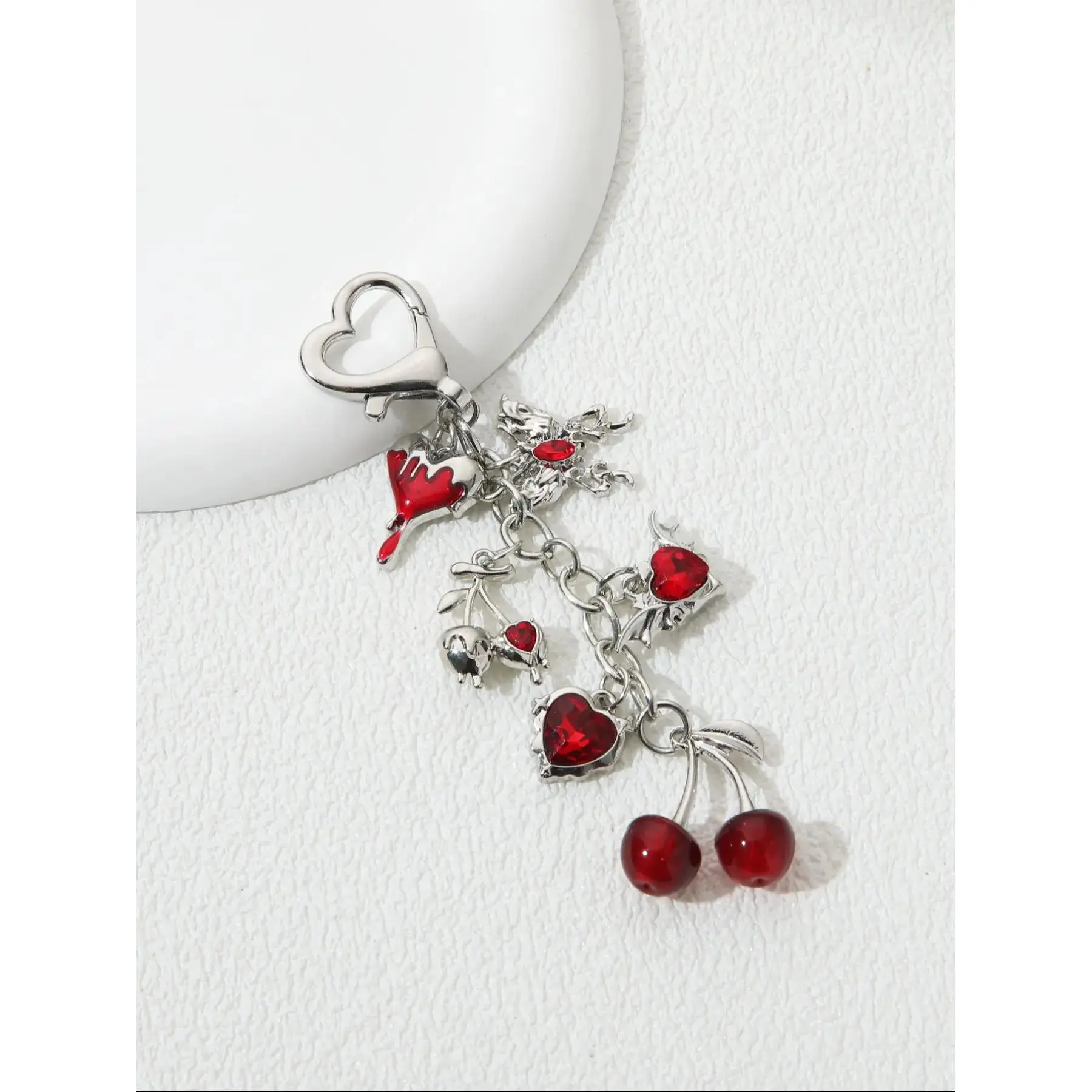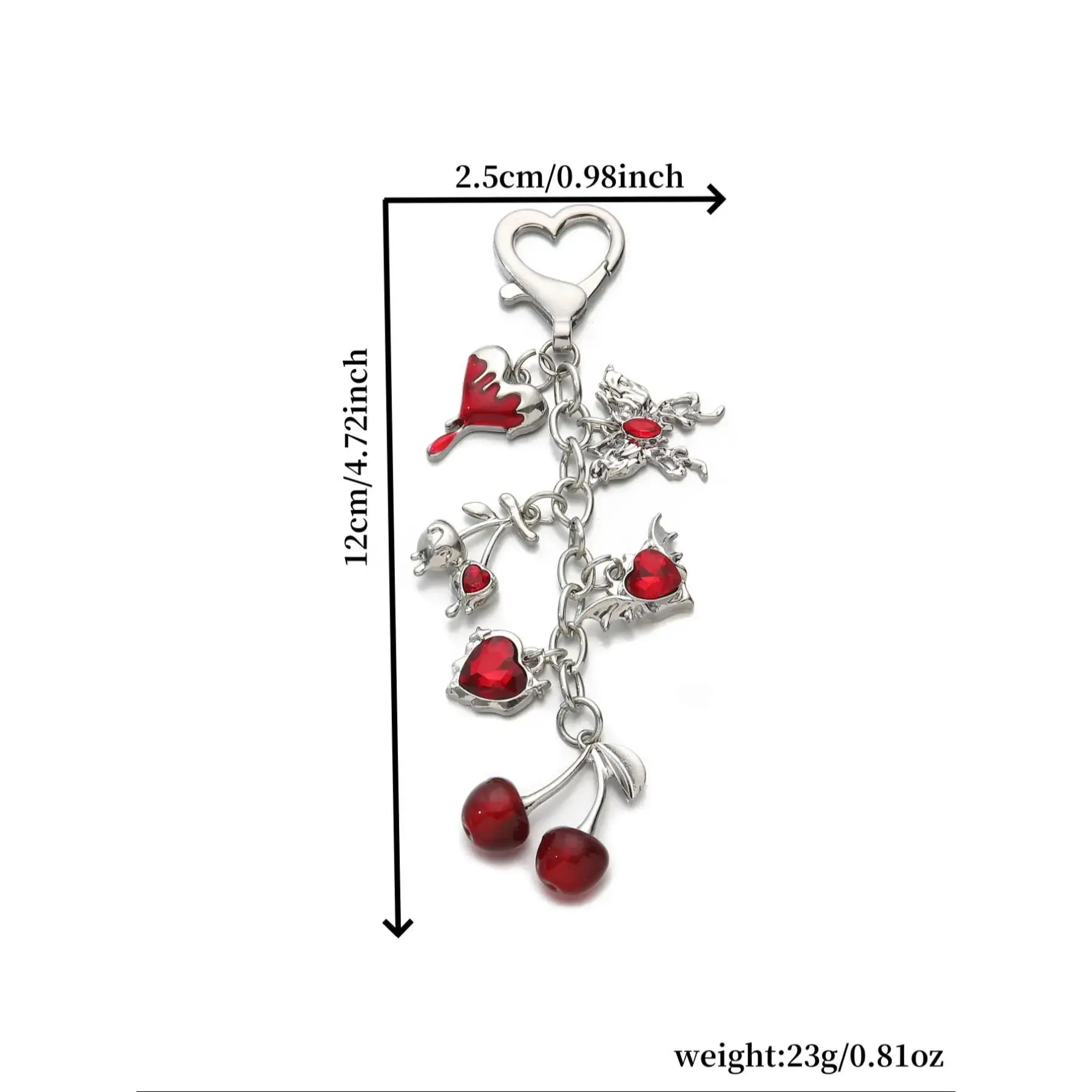 Elegant Cherry Heart Wings Butterfly Keychain with Rhinestones, Stylish Y2K Trendy Key Ring Gift for Friends, Beautiful Alloy Accessory