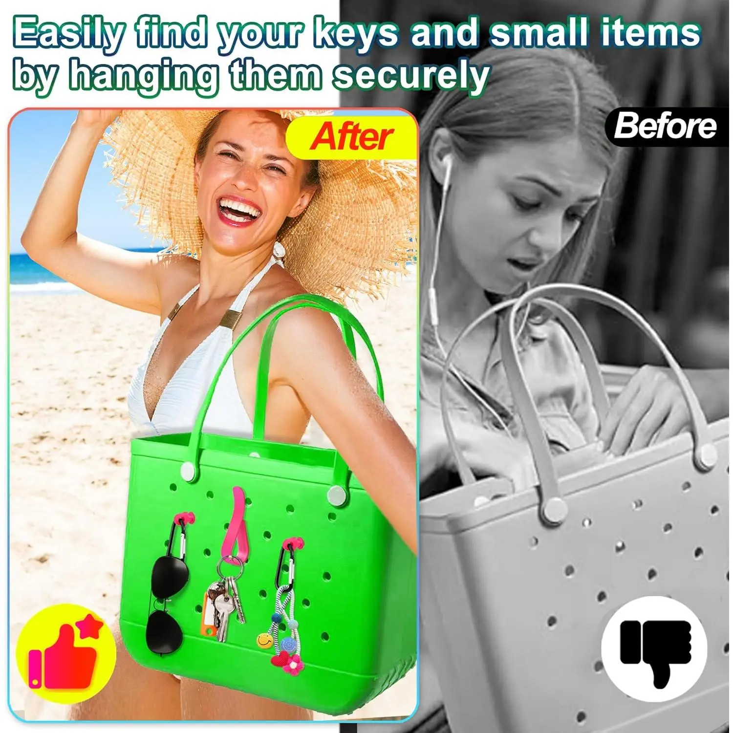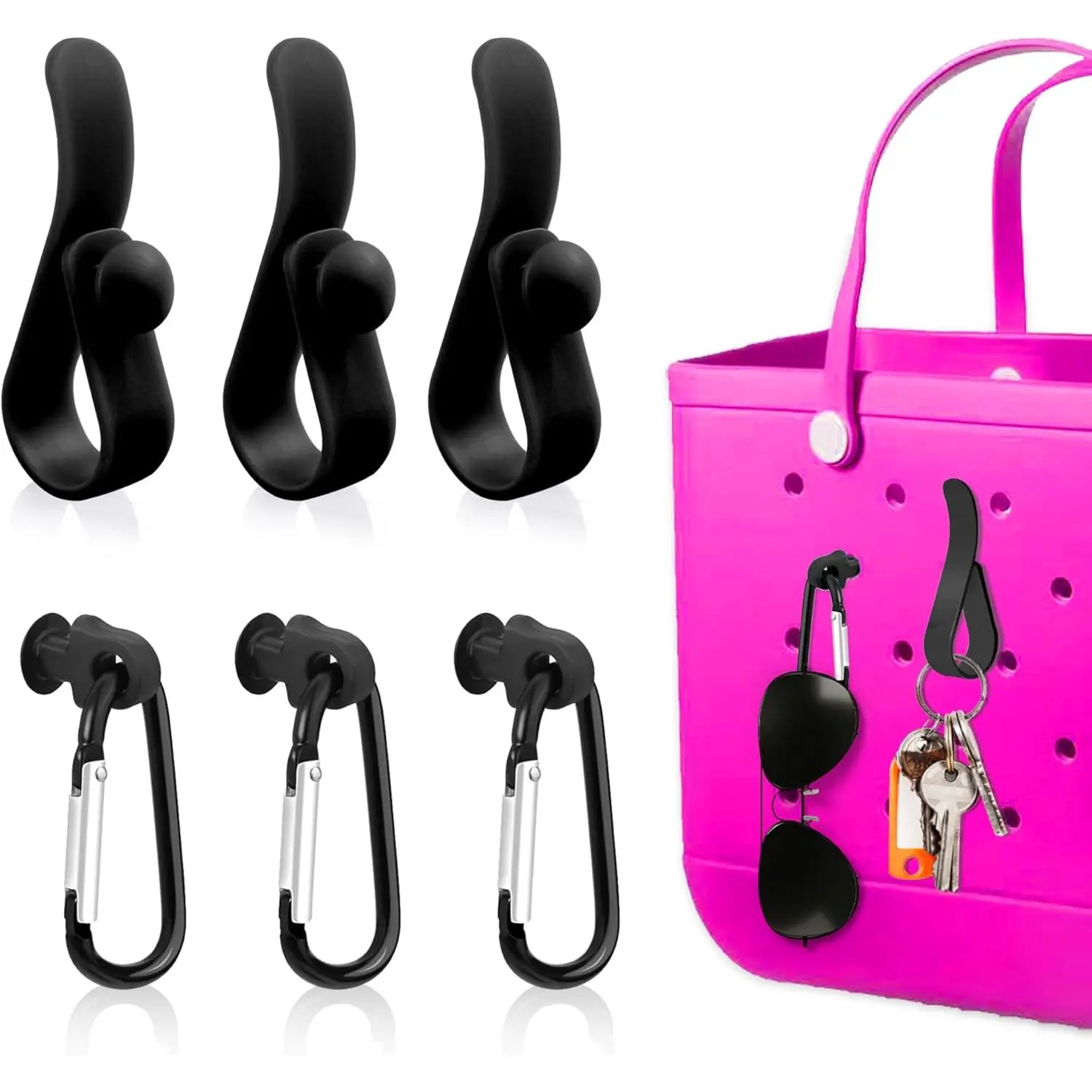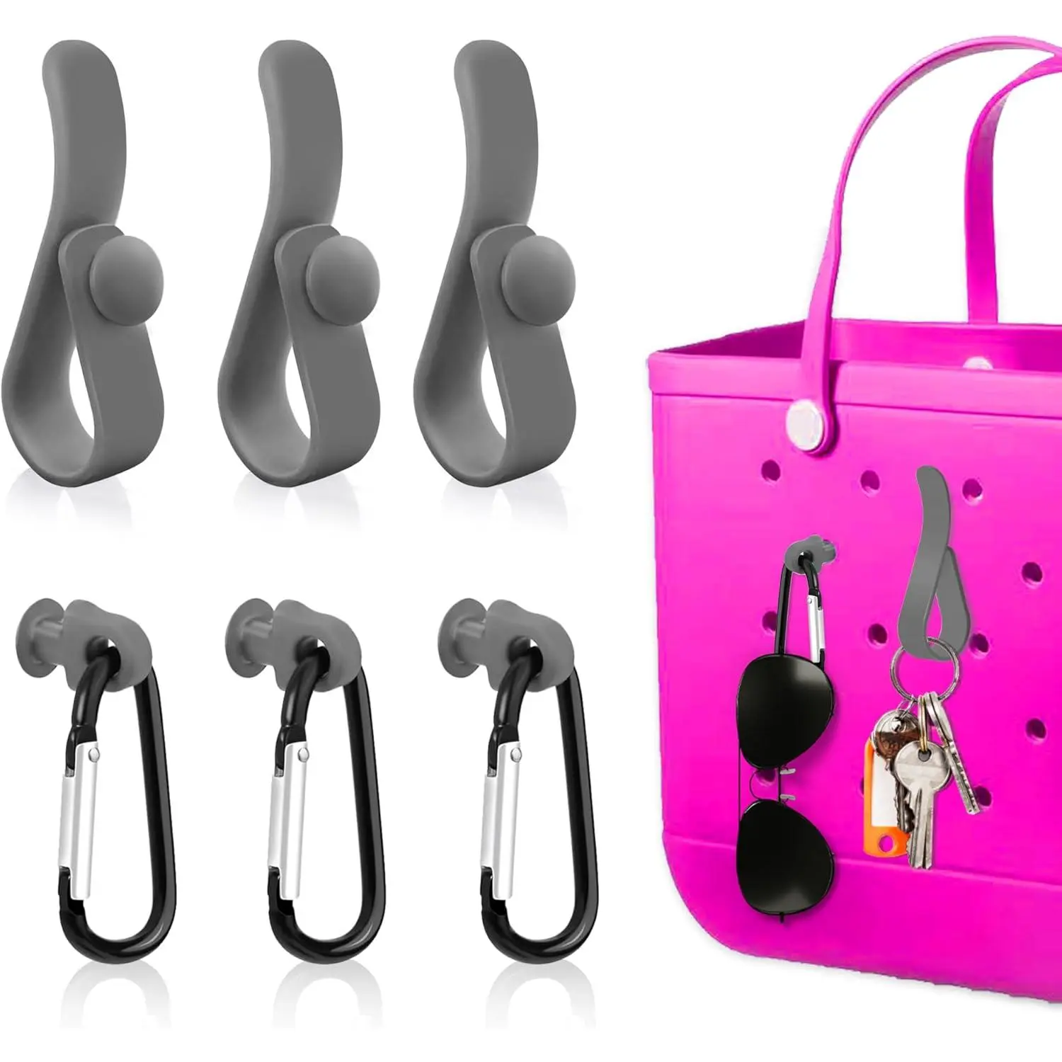 Elevate your Bogg Bag with these 6PCS Accessories Inserts Hooks. Perfect for carabiner keychains and key holders, they are compatible with Bogg Bags and beach bag organizers. These hooks add functionality and style to your bag. Ideal for organizing keys and accessories, they are a must-have for beach enthusiasts.