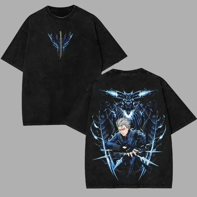 Devil May Cry Vergil Anime Double Sided Action Game Tribute T-Shirt