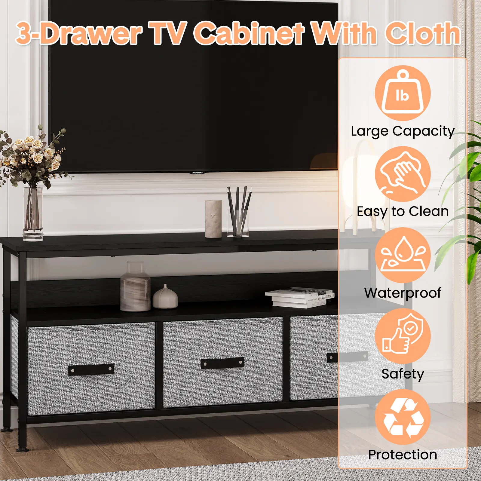 ·Smart Storage: Includes three spacious fabric drawers that allow you to organize and hide controllers, cables, consoles, and multimedia accessories, keeping your space tidy.