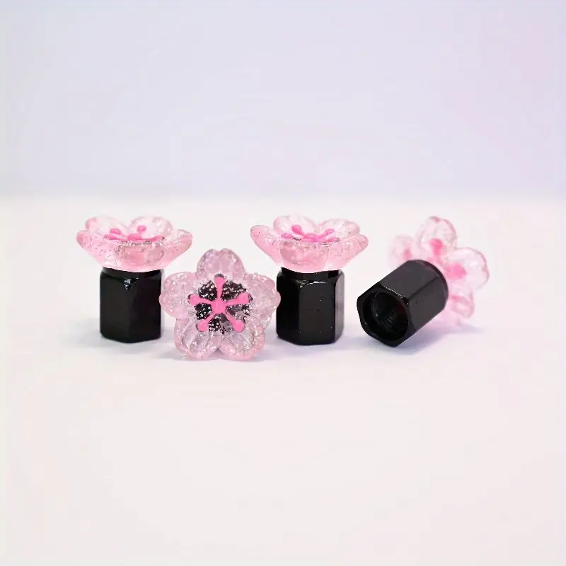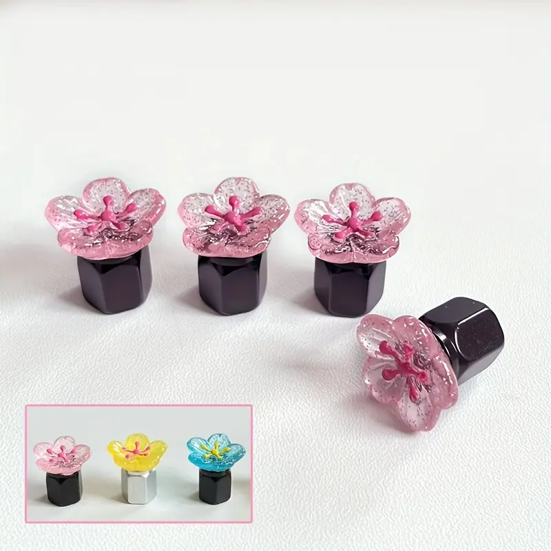 4pcs Universal Car Tire Valve Caps, Aluminum Alloy Flower Design, Creative Gift Idea, Durable Auto Decoration Accessories, Car Parts