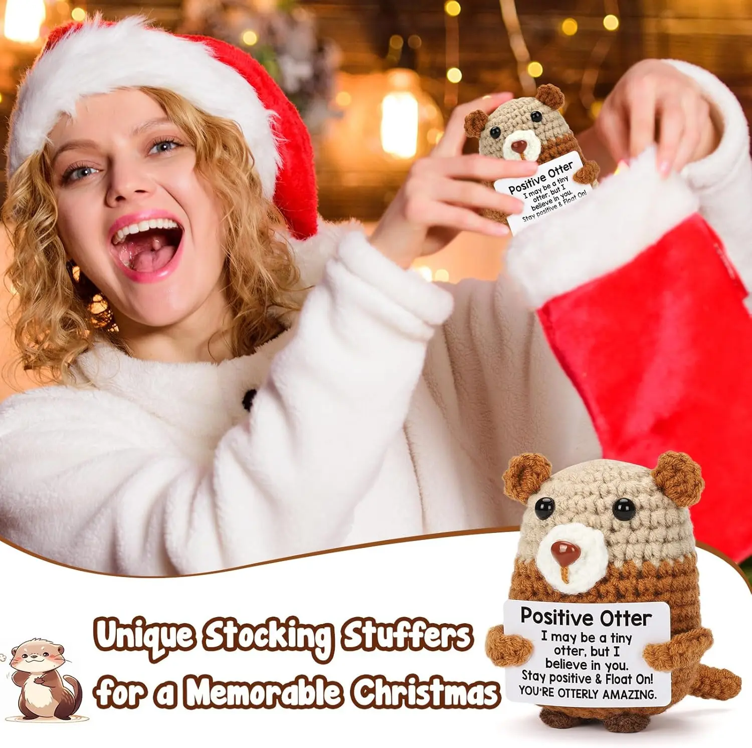 Handmade Emotional Support Otter Positive Crochet Otter Crochet Otter Positive Gifts - Emotional Inspirational Support Motivational Small Otter Pickle Potato Valentines Day Easter Birthday Gifts for Women Men Son Daughter Teen Friend