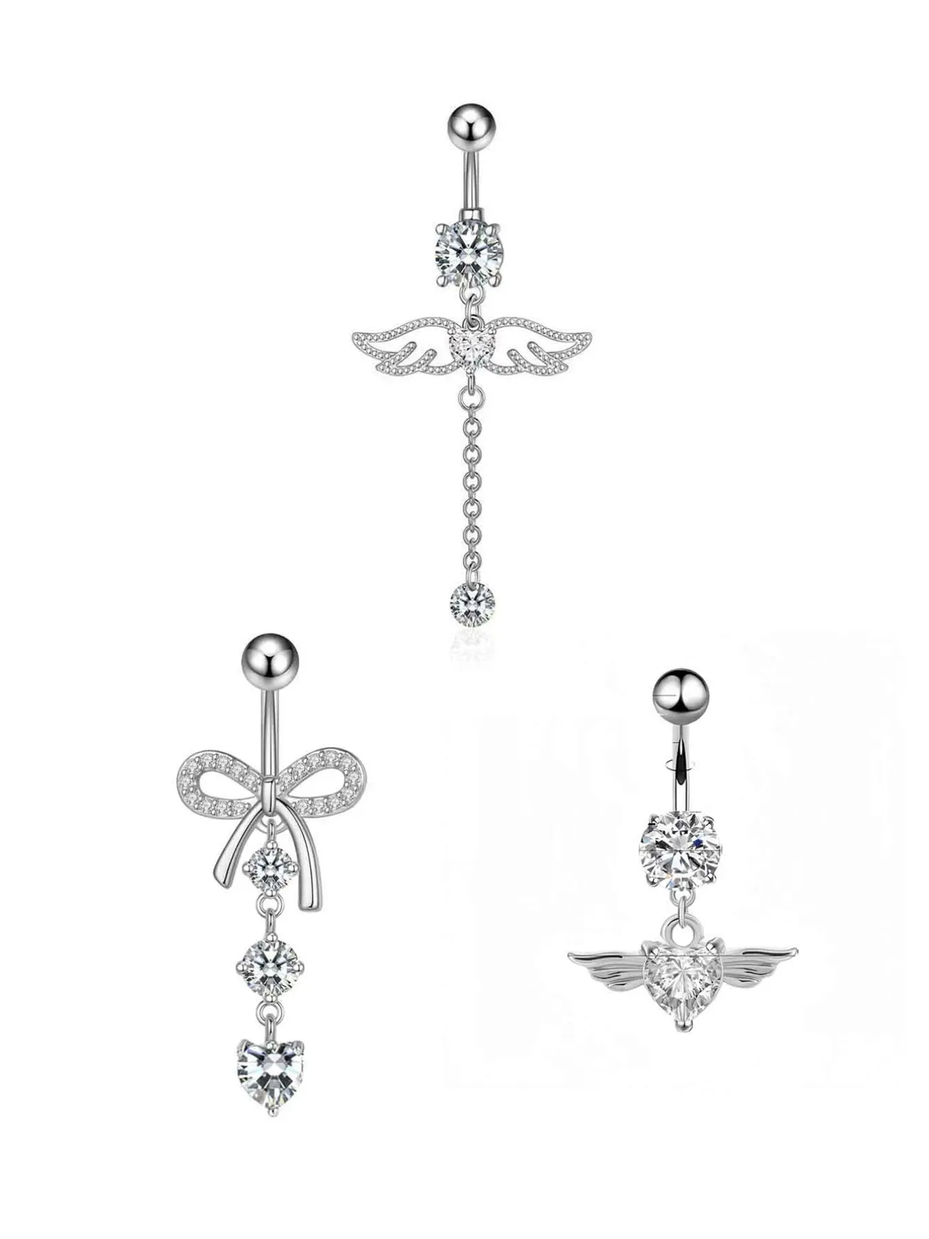 14G 10mm Navel Piercing Jewelry Set, CZ Belly Button Rings, Dangle Butterfly Heart Bowknot Belly Piercing for Women Girls, Hypoallergenic Navel Barbell Body Jewelry for Summer Beach