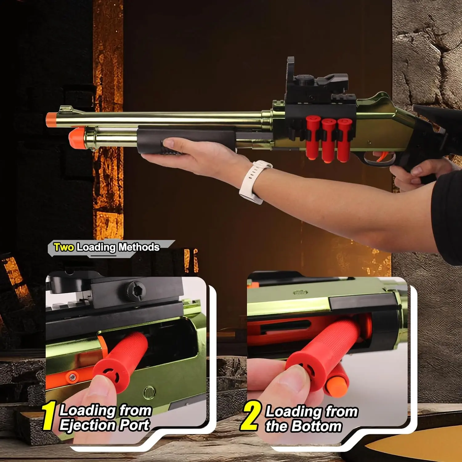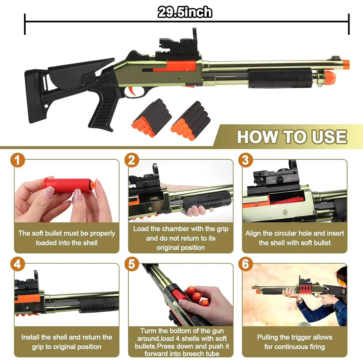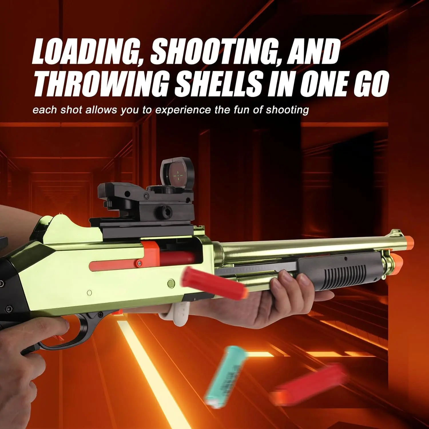 The JH2027 XM1014-Golden Soft Dart Toy is ideal for outdoor team games. It includes 20 foam darts and 6 reusable shells. The blaster boasts a gold tactical finish and modular rails, compatible with scopes. Certified child-safe for ages 14+, it's perfect for backyard battles. Dominate with authentic shell-ejecting action.