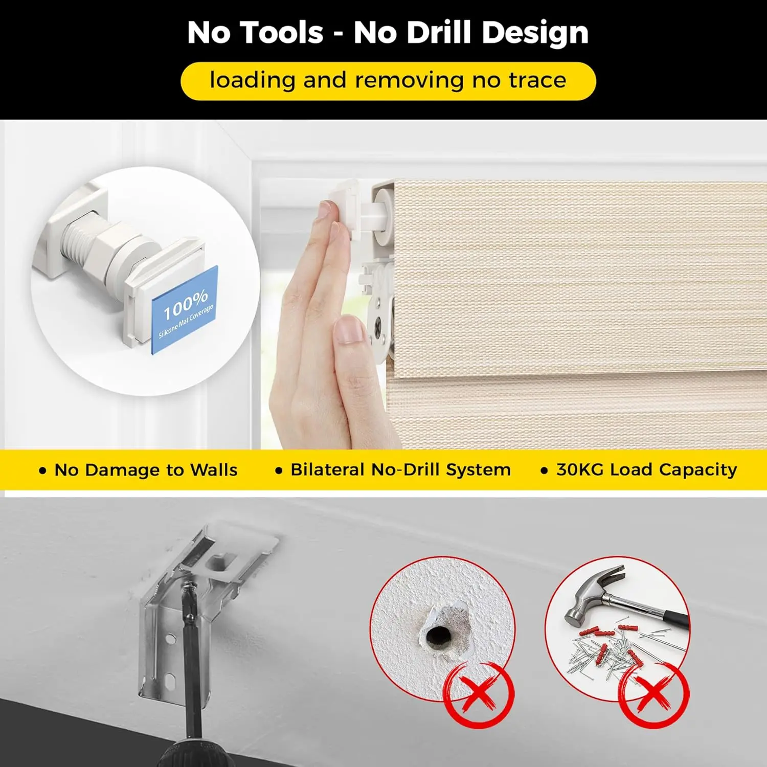 Cordless Zebra Blinds Linen No Drill Installation Linen High Precision Fabrics Beige 32.5" W x 72" H