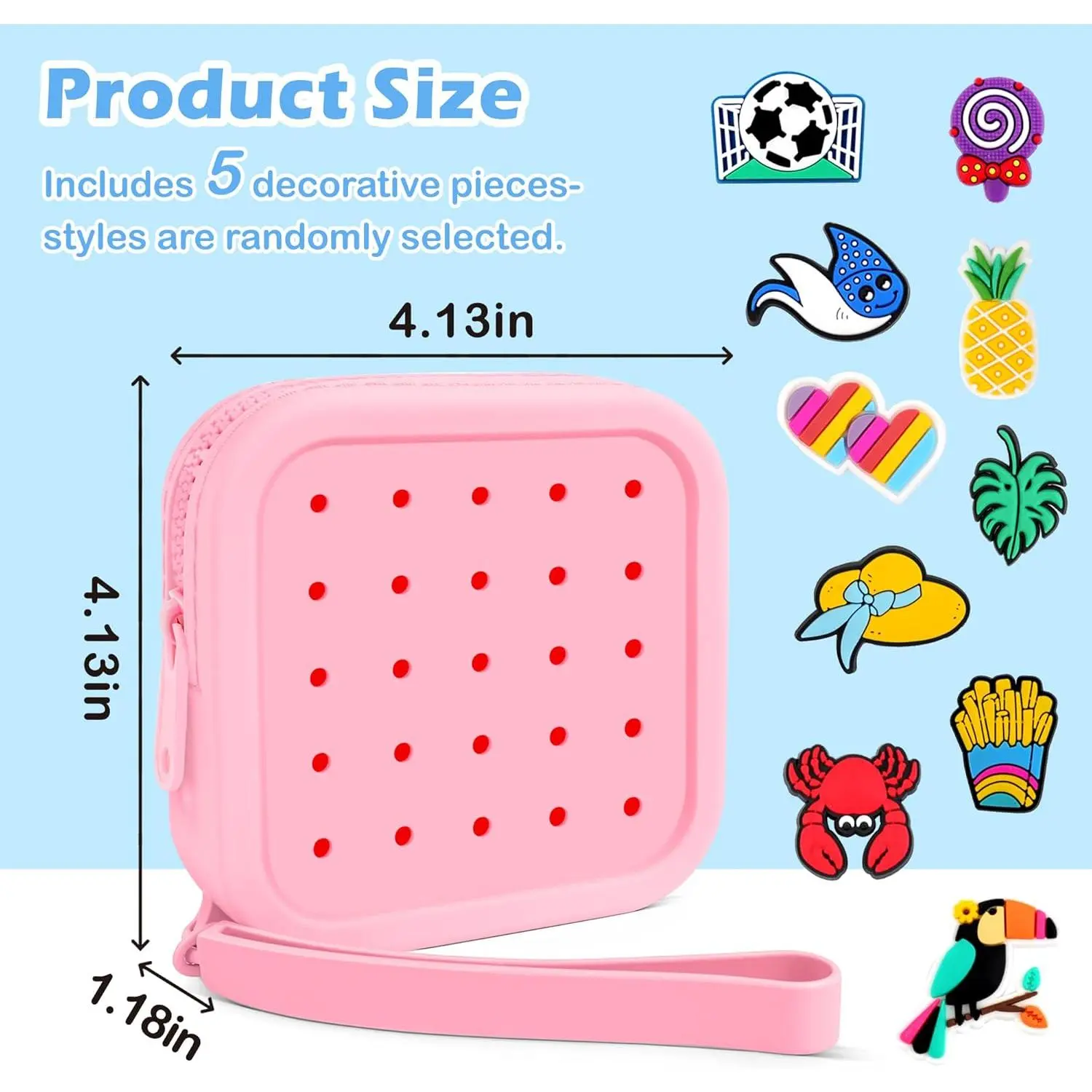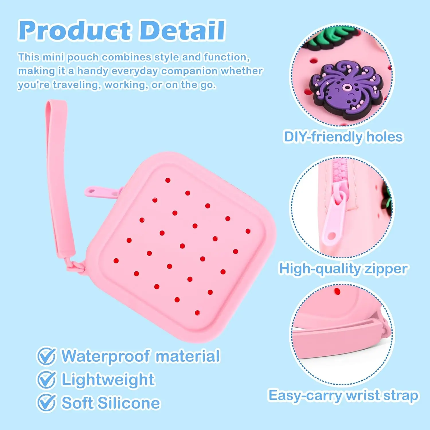 Small Silicone Pouch for Purse – Portable Organizer Bag, Mini Cosmetic Bag Holds Lipsticks, Coins, Travel Accessories, Zipper Pouch, Small Makeup Bag With 5 Charms(Pink)