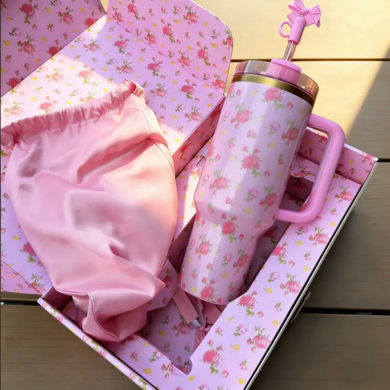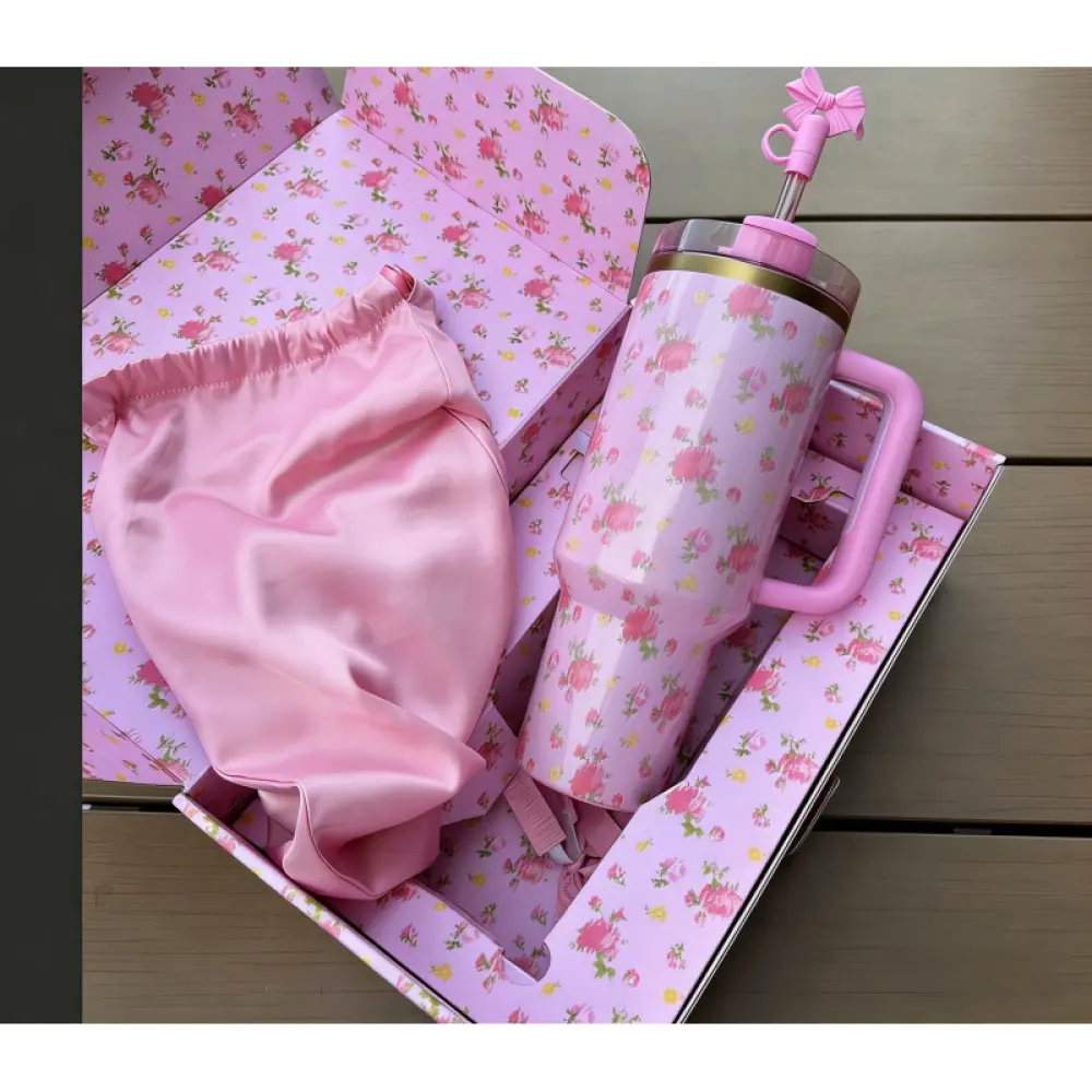 Lotus Pink Giant Leak-Proof Stainless Steel Tumbler with Removable Foldable Straw Lid, Insulated for Hot & Cold,40oz
