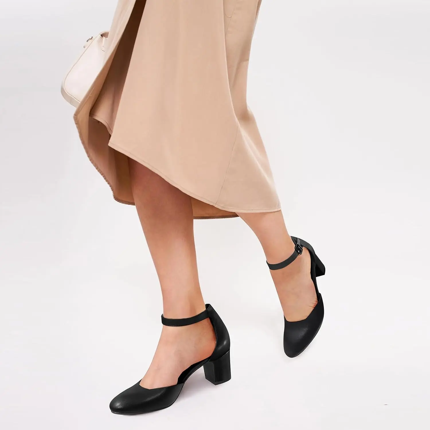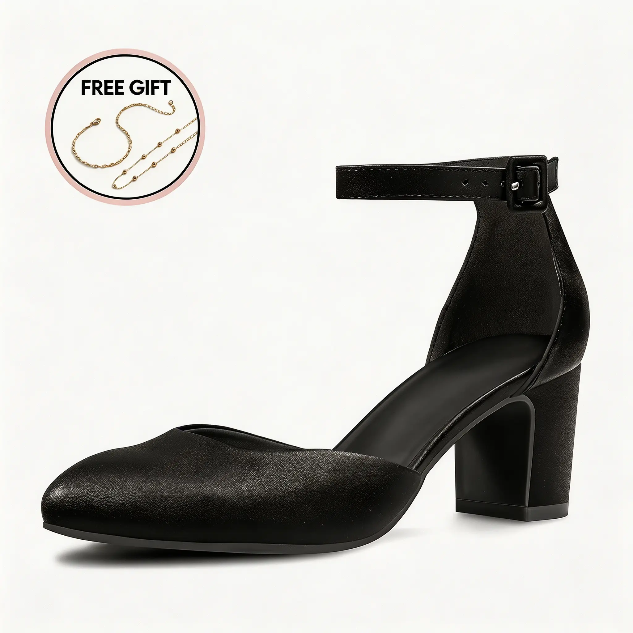 Women's Gilaa Closed Toe Low Chunky Heels Pumps Ankle Strap Wedding Business Round Toe Block Dress Shoes