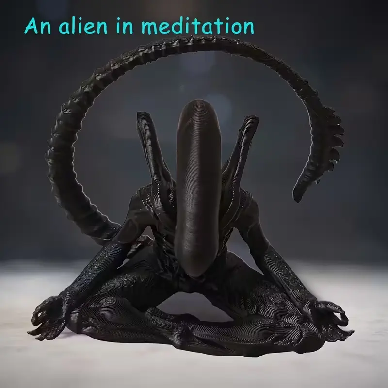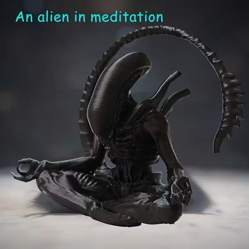 [Alien Figurine]: Features a unique alien meditation design, capturing attention with its vivid eyes and open arms.
