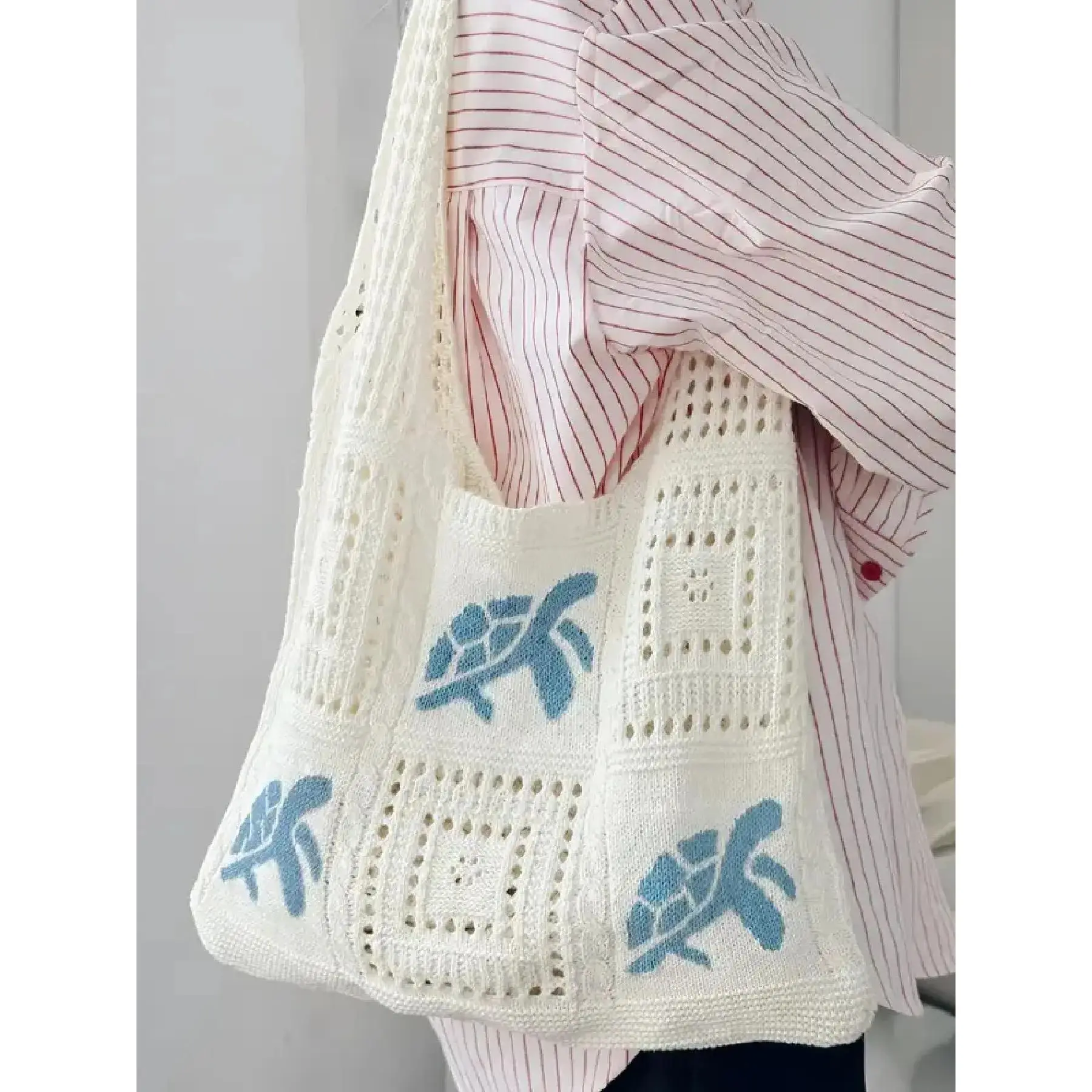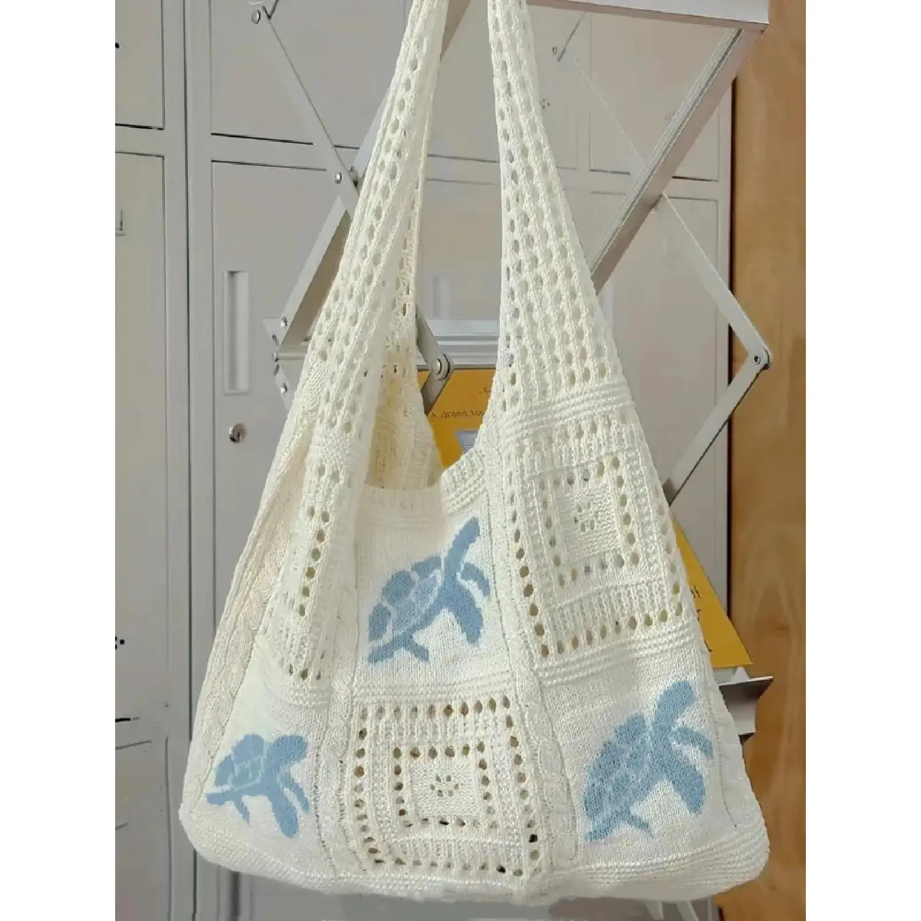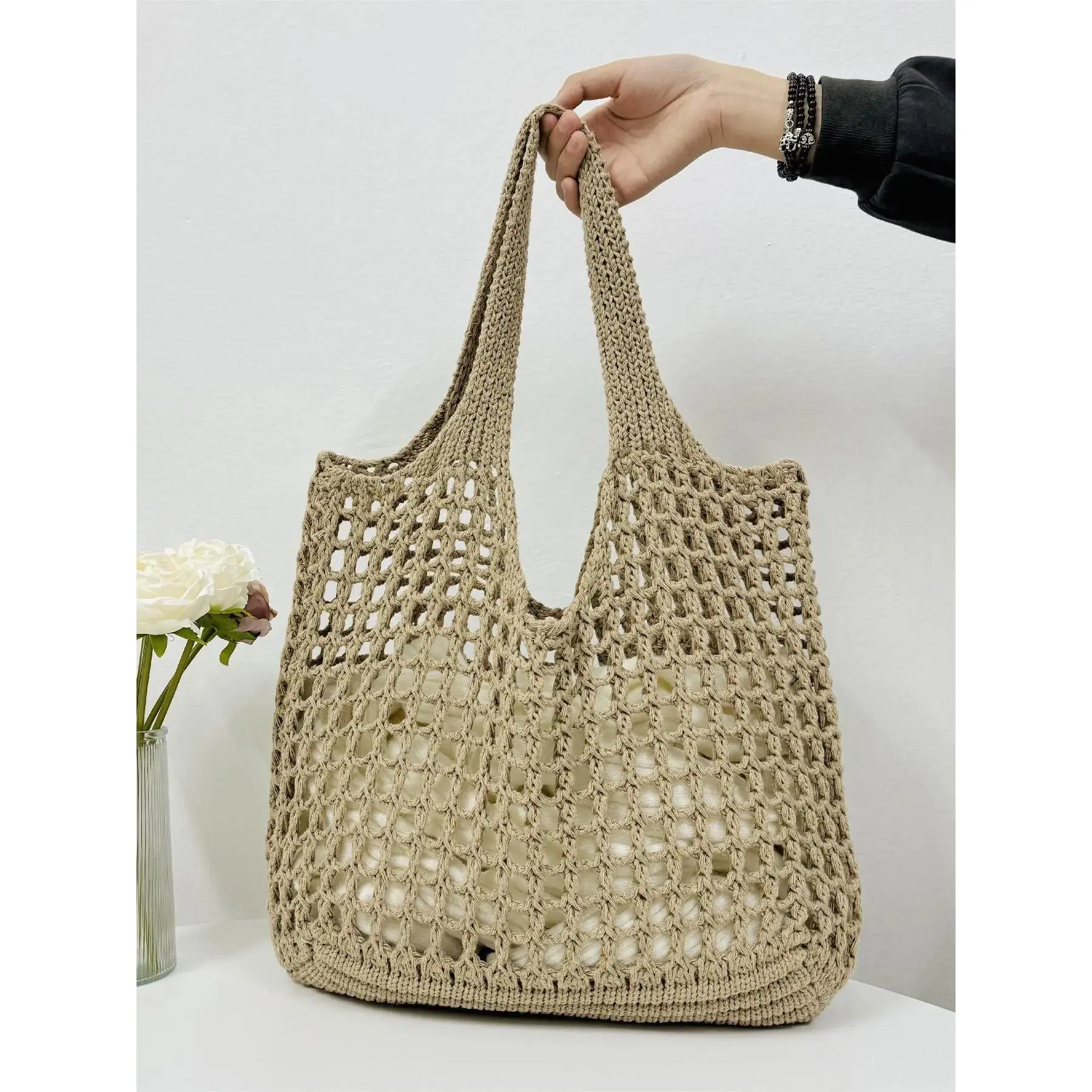 Ladies' simple casual hollow design shoulder bag, fashionable daily personalized pattern knitted bag, Colorblock Bag, Crossbody Crochet Bags