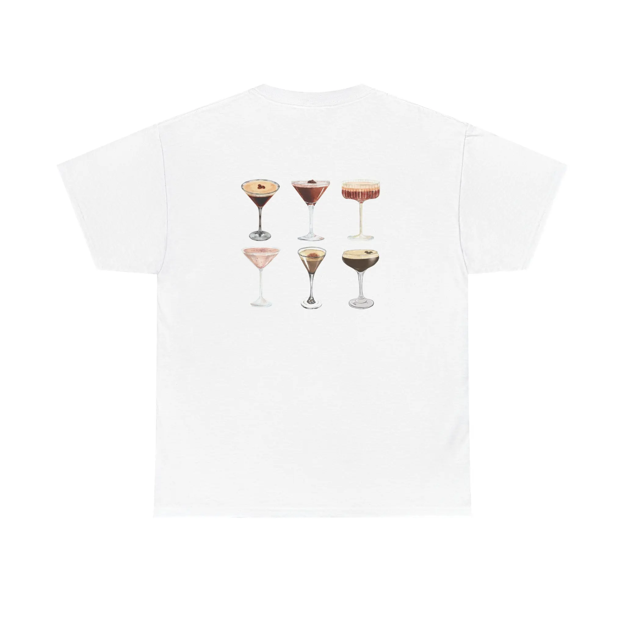 This short sleeve T-shirt comes with a fun and stylish Espresso Martini graphic design, full of fresh summer vibes and trendy cocktail culture. Designed with a classic crew neck and unisex regular fit, it provides a comfortable and relaxed wearing experience for both men and women, perfect for summer outings, beach trips, cocktail parties, casual gatherings, coffee dates, daily streetwear and vacation looks. The lightweight and breathable fabric keeps you cool and comfortable all day long in hot weather, with a smooth touch that brings a pleasant wearing feeling. High-quality printing ensures the pattern is clear, vibrant and long-lasting, not easy to fade or peel after repeated washing. Its versatile style matches easily with jeans, shorts, skirts, casual pants and light jackets, making it a must-have summer piece for coffee lovers and cocktail enthusiasts. The eye-catching design and relaxed fit make it suitable for various casual occasions, showing your personality and love for trendy summer lifestyle while staying comfortable and fashionable.