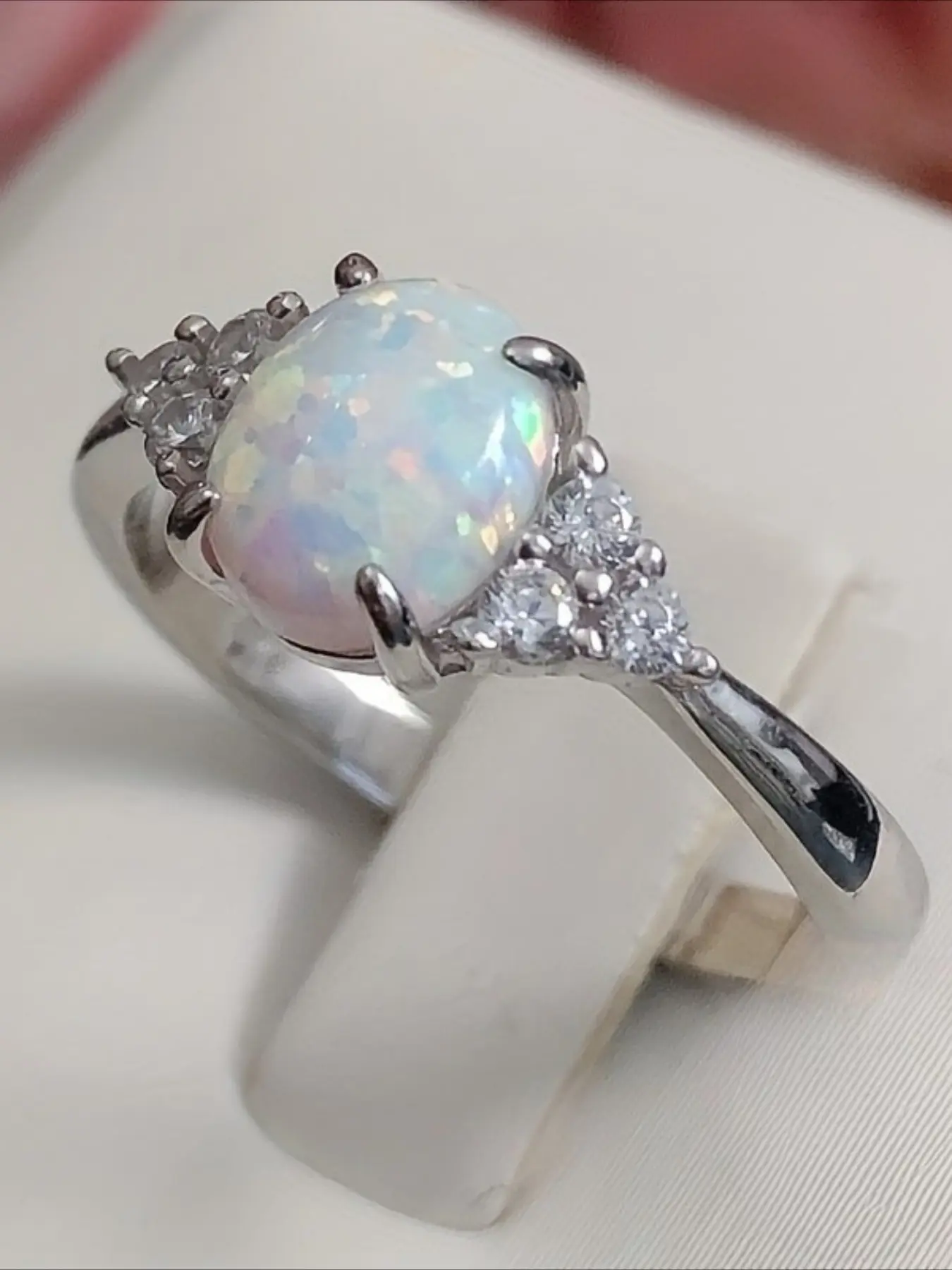 Classic and elegant oval inlaid imitation Australian treasure women's ring suitable for daily parties, banquets, engagements, women's jewelry gifts