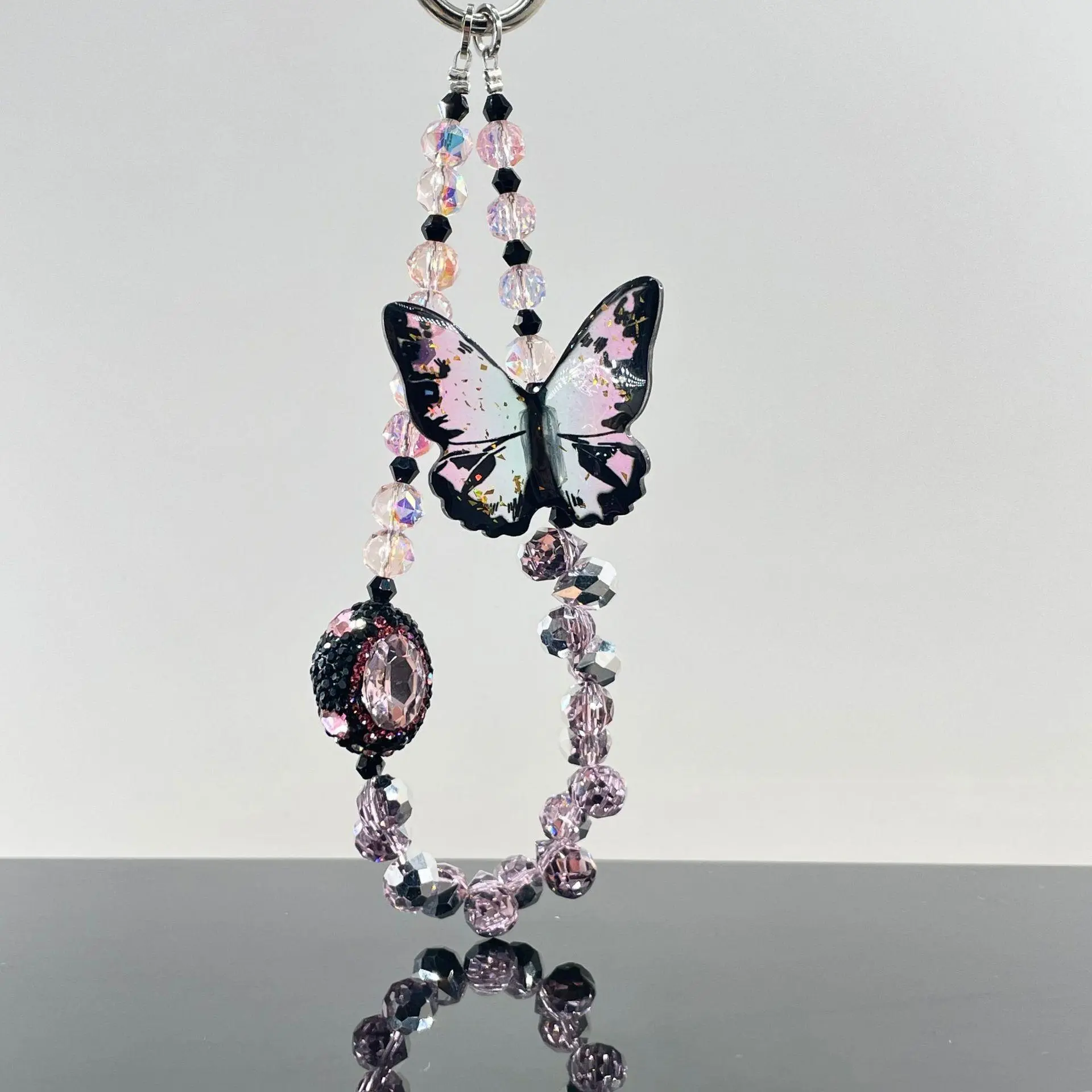 Butterfly Design Beaded Phone Chain, DIY Premium Smudge Bow Beaded Crystal Lanyard, Phone Wrist Lanyard, Earphone Case Key Camera Ornament, Charms