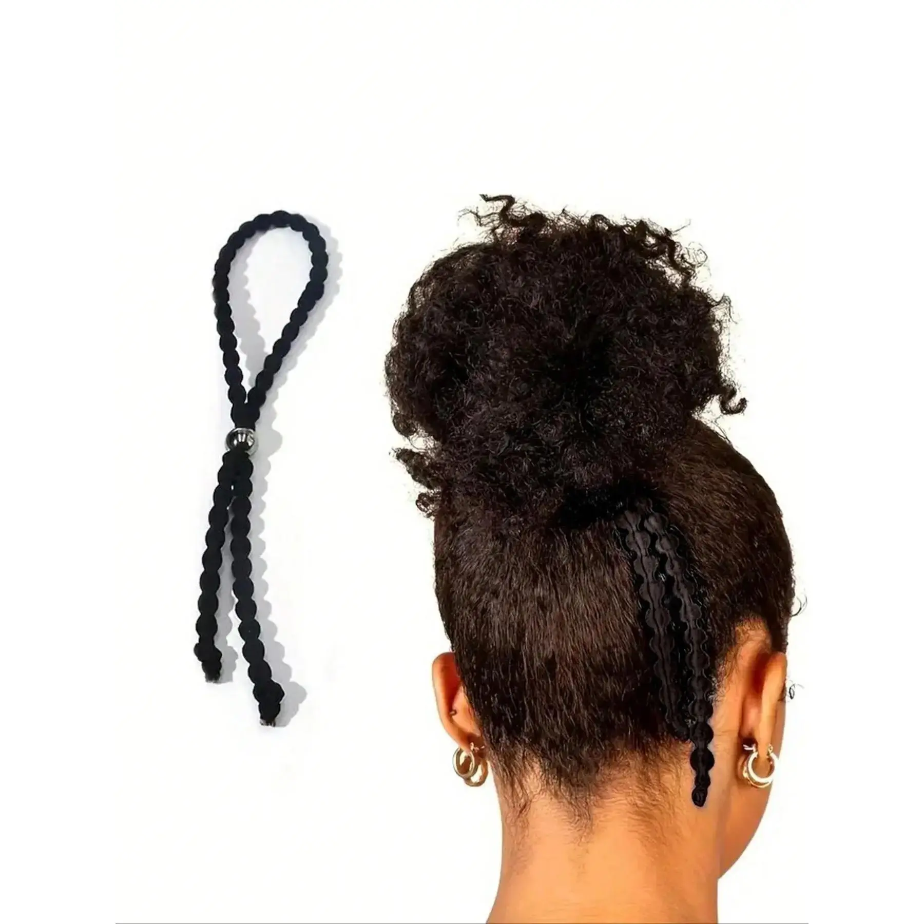 [Color Options]: Available in a classic black color, these hair ties offer a timeless appeal that matches a wide range of outfits and occasions.