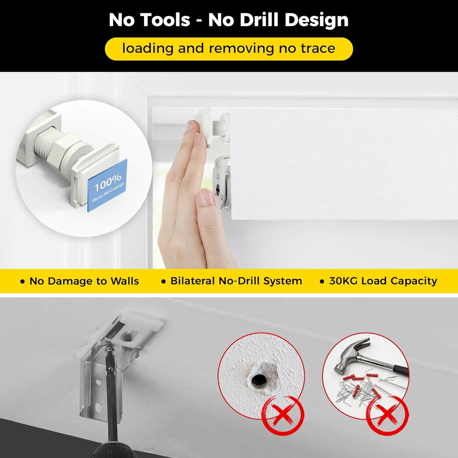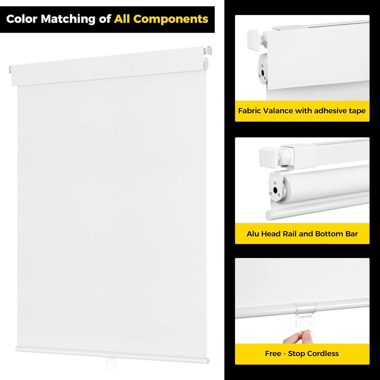 🌟 No Tools No Drill Cordless Blackout Roller Shades