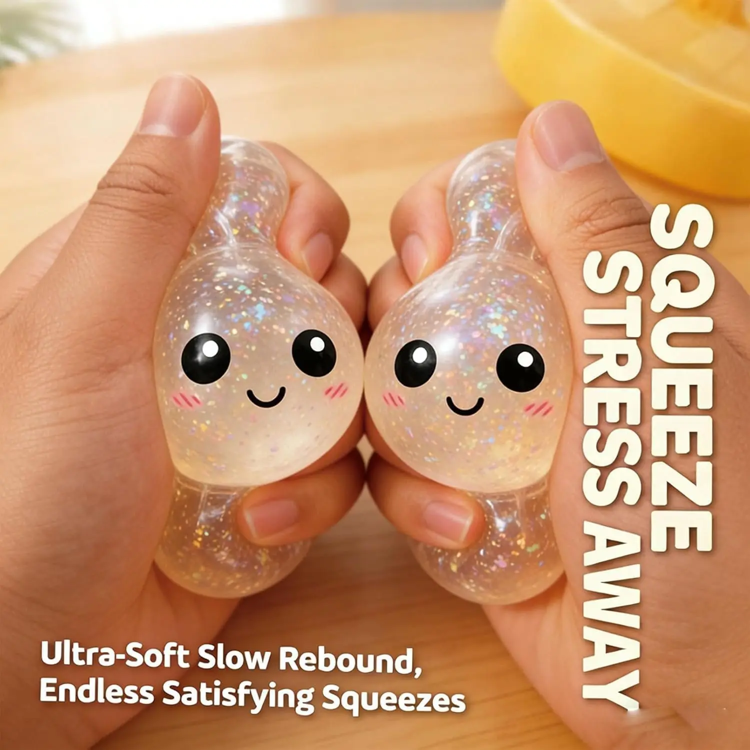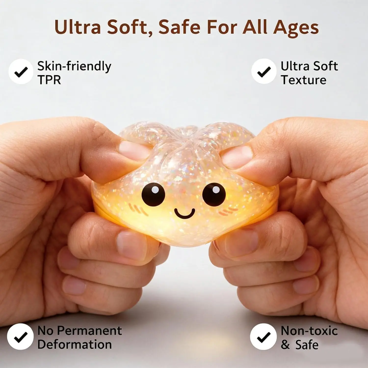 ·Texture: Ultra-soft, squeezable, glitter-infused surface