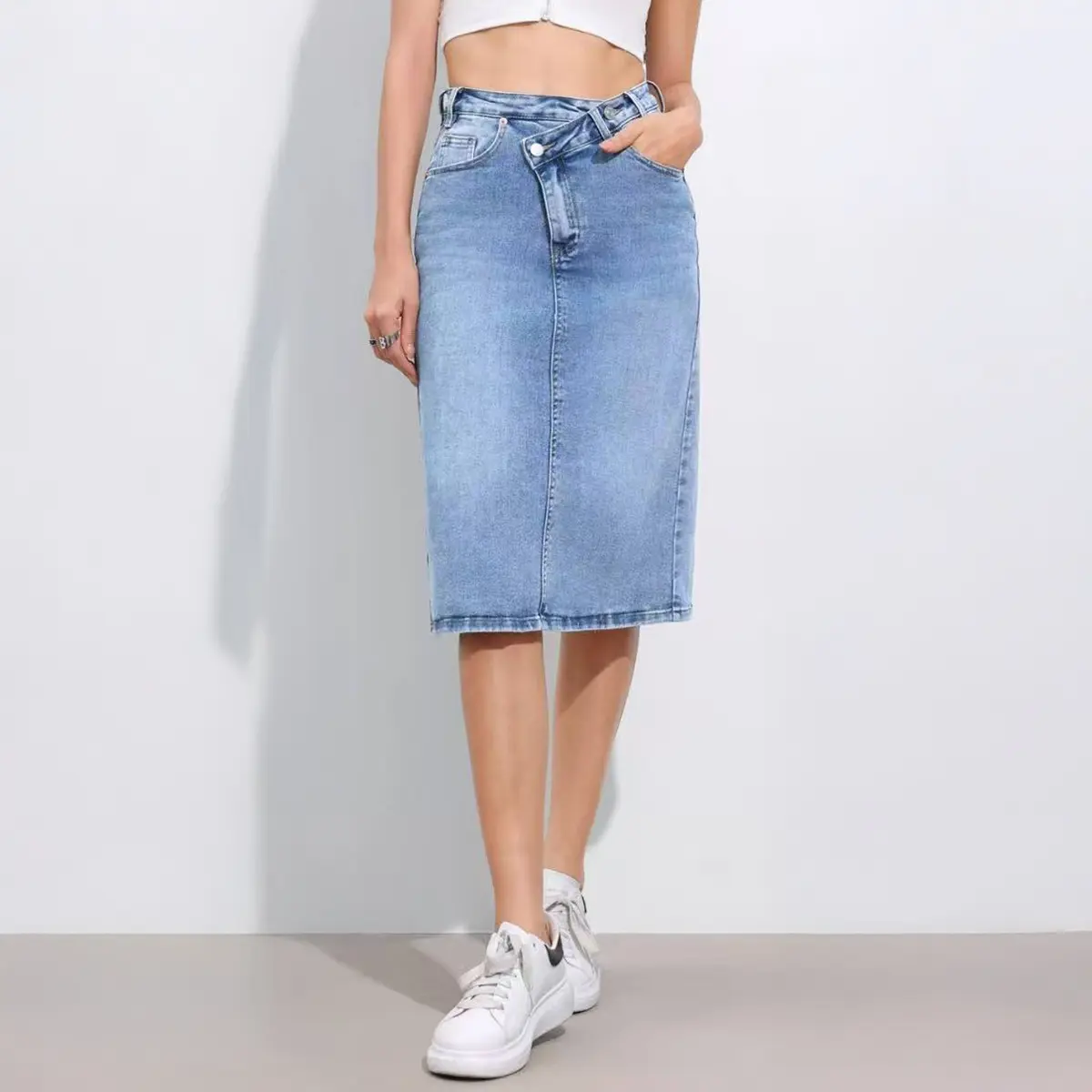 Crafted with a comfortable high-rise waistband, this skirt accentuates your curves and elongates the legs.
