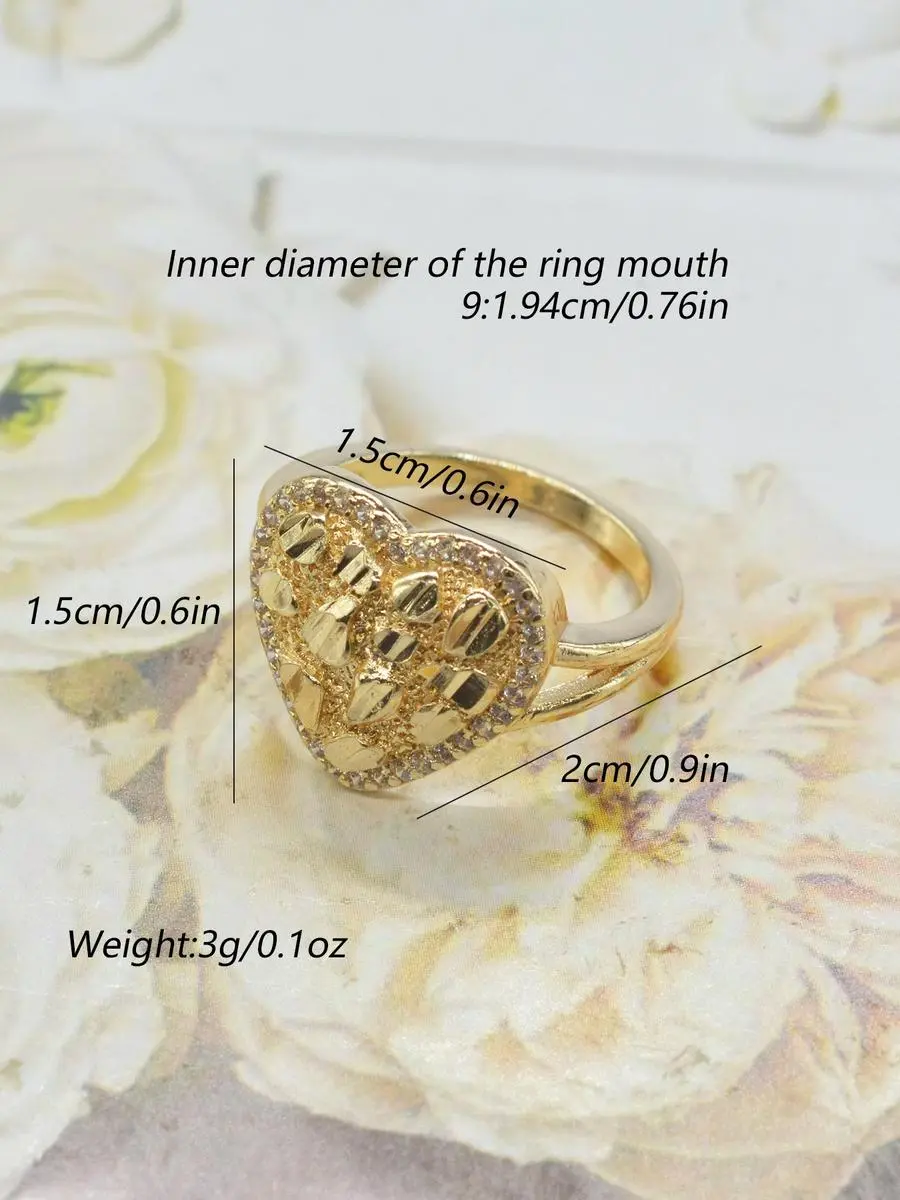 Gold Heart Statement Ring for Women | Elegant Sparkly Fashion Jewelry Gift