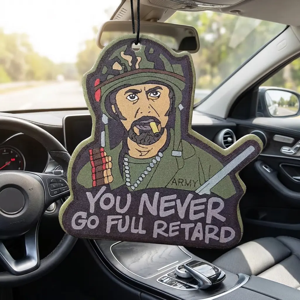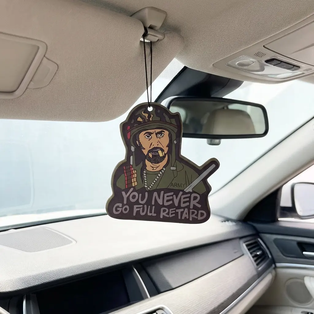 Novelty Car Air Freshener, Tropic Thunder "You Never Go Full Retard" Quote, Long Lasting Scent Pendant, Funny Military Man Cartoon Hanging Ornament for Car Interior Decor