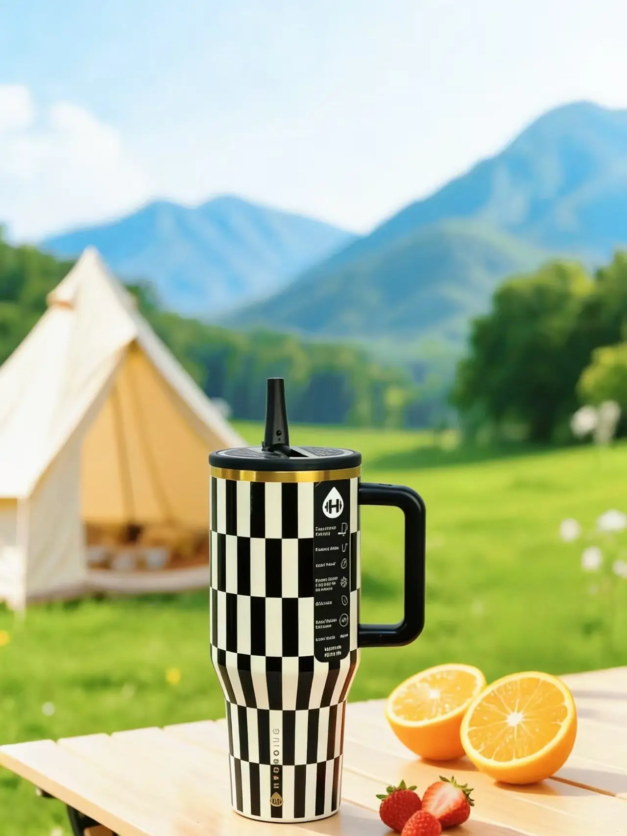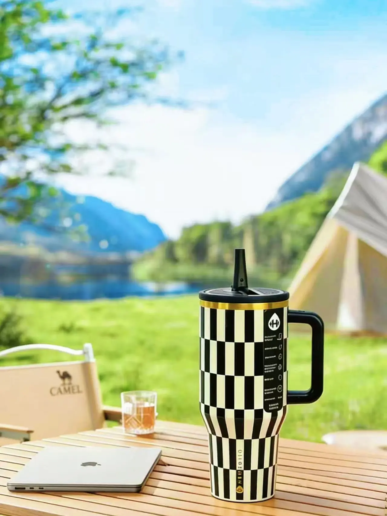 HydroJug 40oz Trendy Checkerboard 40oz Tumbler with Handle, Insulated Stainless Steel Water with Straw, Leakproof Lid for On-the-Go Hydration & Outdoor Adventures Drinkware Flasks Bottled Mug Portable travel beverage coffee gourd bottle Engine-Themed