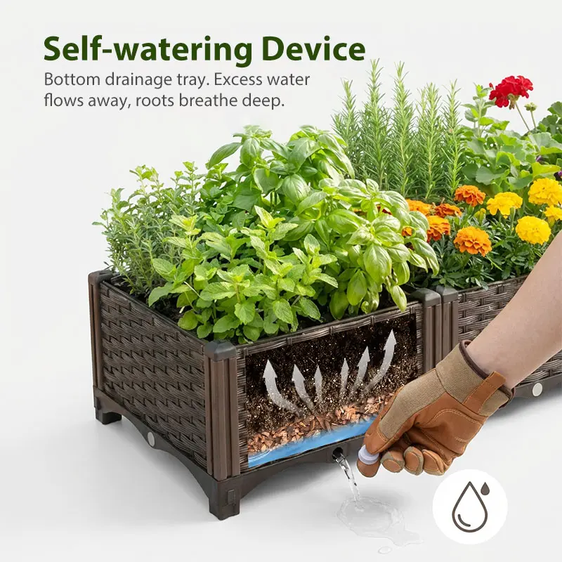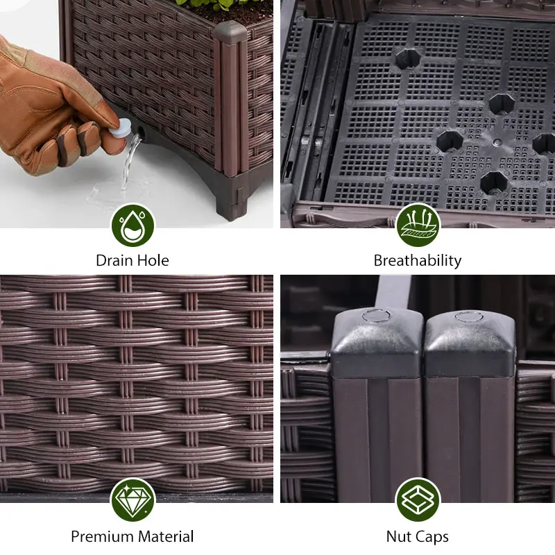 Drain holes prevent waterlogging, promoting healthy roots. The large capacity reduces refills. Tool-free assembly with interlocking panels. Nut caps retain fertilizer. Perfect for home gardens, balconies, patios, and community gardens. No permanent installation required.