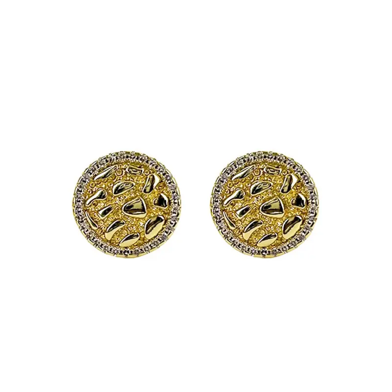 14K Gold Plated Brass Golden Nugget Cookie Stud Earrings with Cubic Zirconia Unisex 4 Sizes 12mm 14mm 16mm 20mm High Quality Polished
