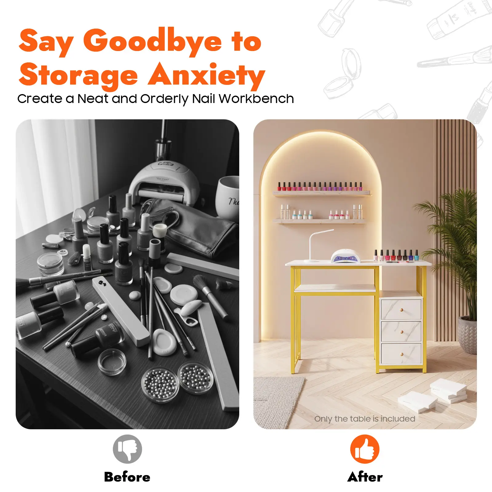 2. Please note that this product does not include nail polish, nail lamps, storage boxes, or other storage items.