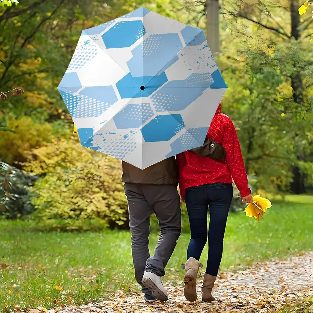 Football Field Pattern Umbrella, Automatic Folding, Sun Protection, Durable 8-Rib, Outdoor Use, Great Gift, World Cup Umbrella