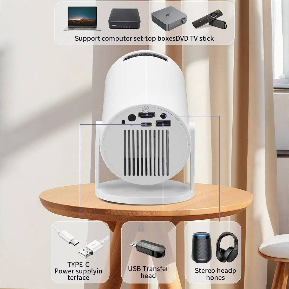 The portable mini game video projector offers an enhanced viewing experience with high-definition picture quality and flexible projection. Its convenient and practical design, including multi-device compatibility and low-noise operation, makes it ideal for various entertainment and office scenarios.