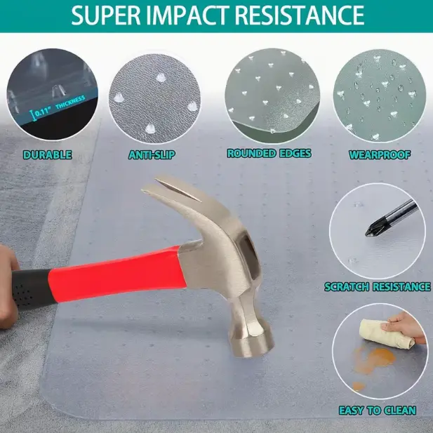 ------Convex Nail Bottom Sliding Wheelchair Mat, 36" X 48" Plastic Floor Mat, Home Office Chair Mat, Computer Desk Chair Mat, PVC Transparent Carpet with Lip Pile On The Back