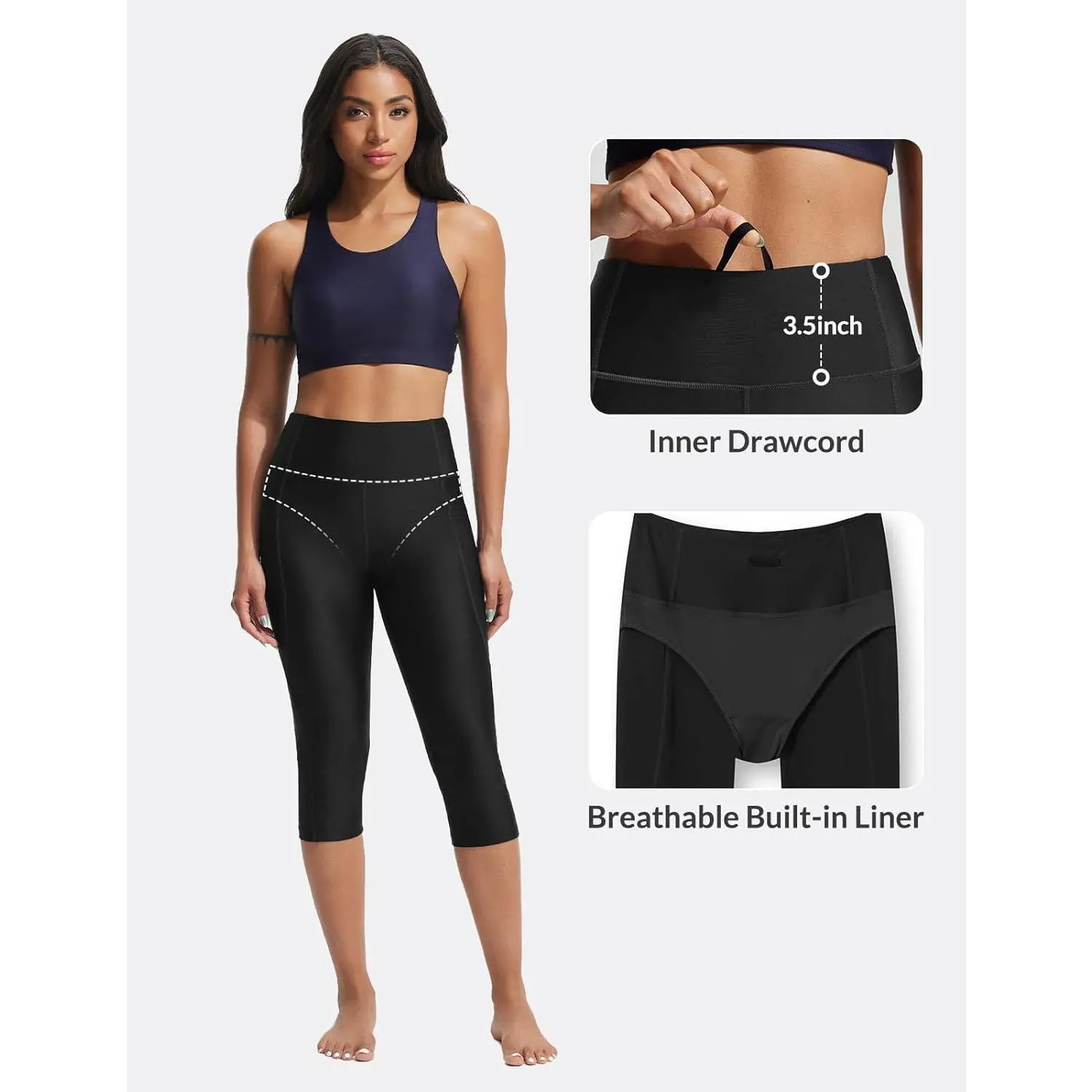 Baleaf Womens 18 Inch High Waisted Swim Capris UPF 50 Sun Protection Swim Tights With Built In Liner And Pockets For Water Aerobics