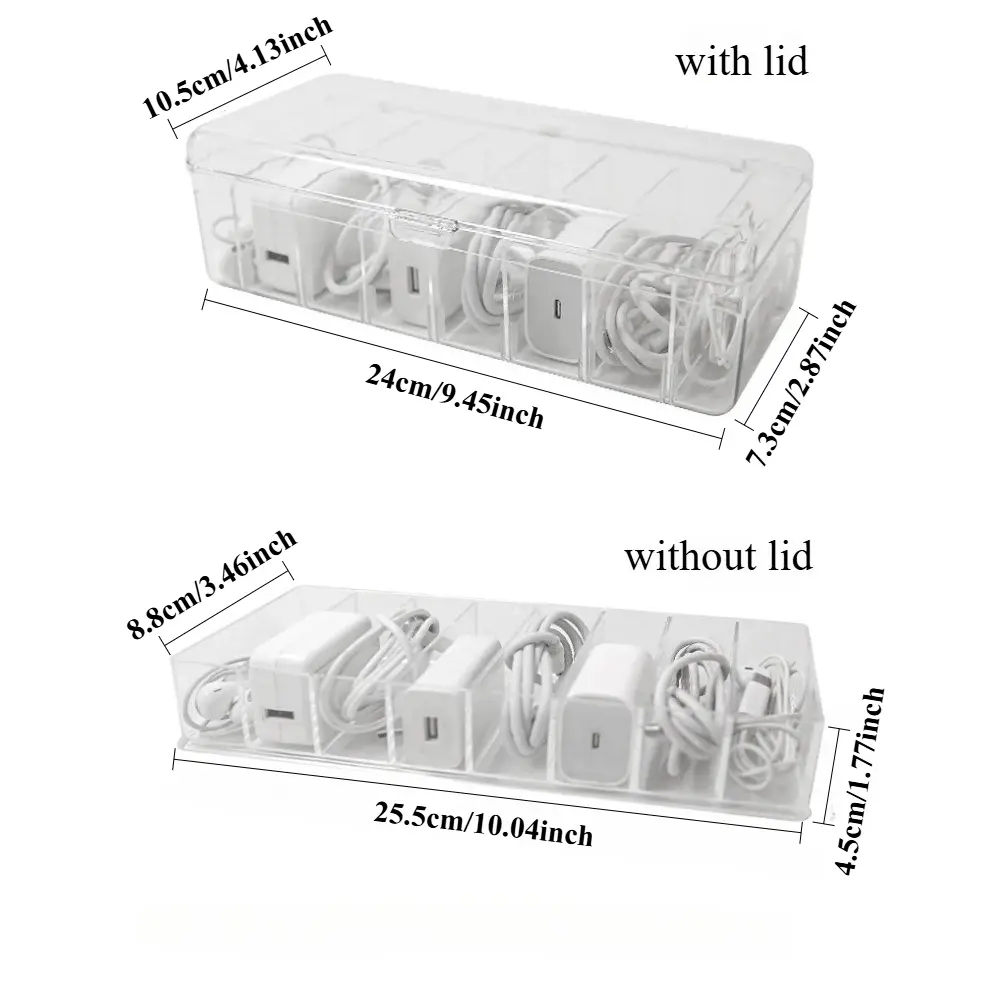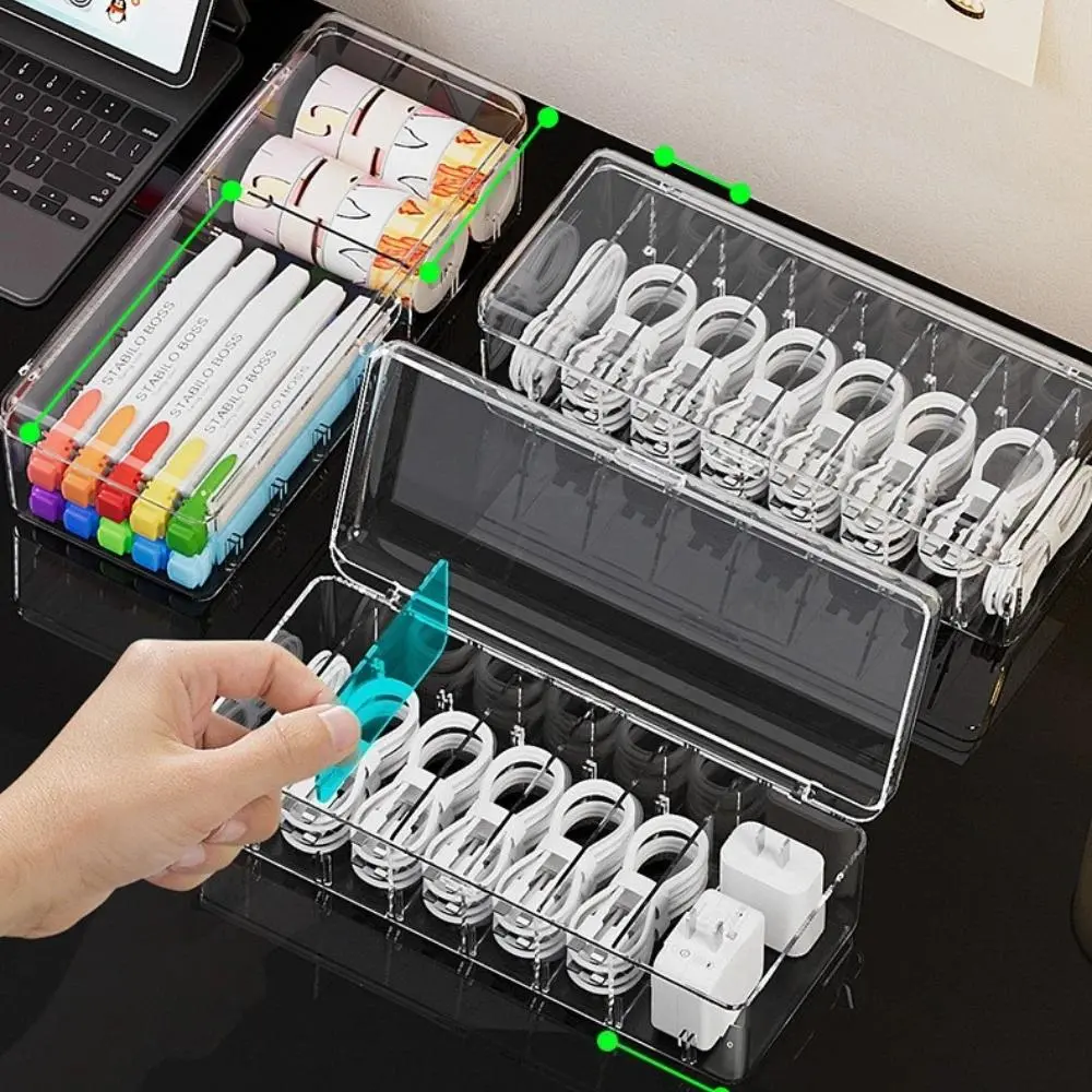 Clear Plastic Cable Organizer Boxes Desk Accessories Storage Case for Drawer, Office Supply, Electronic Management