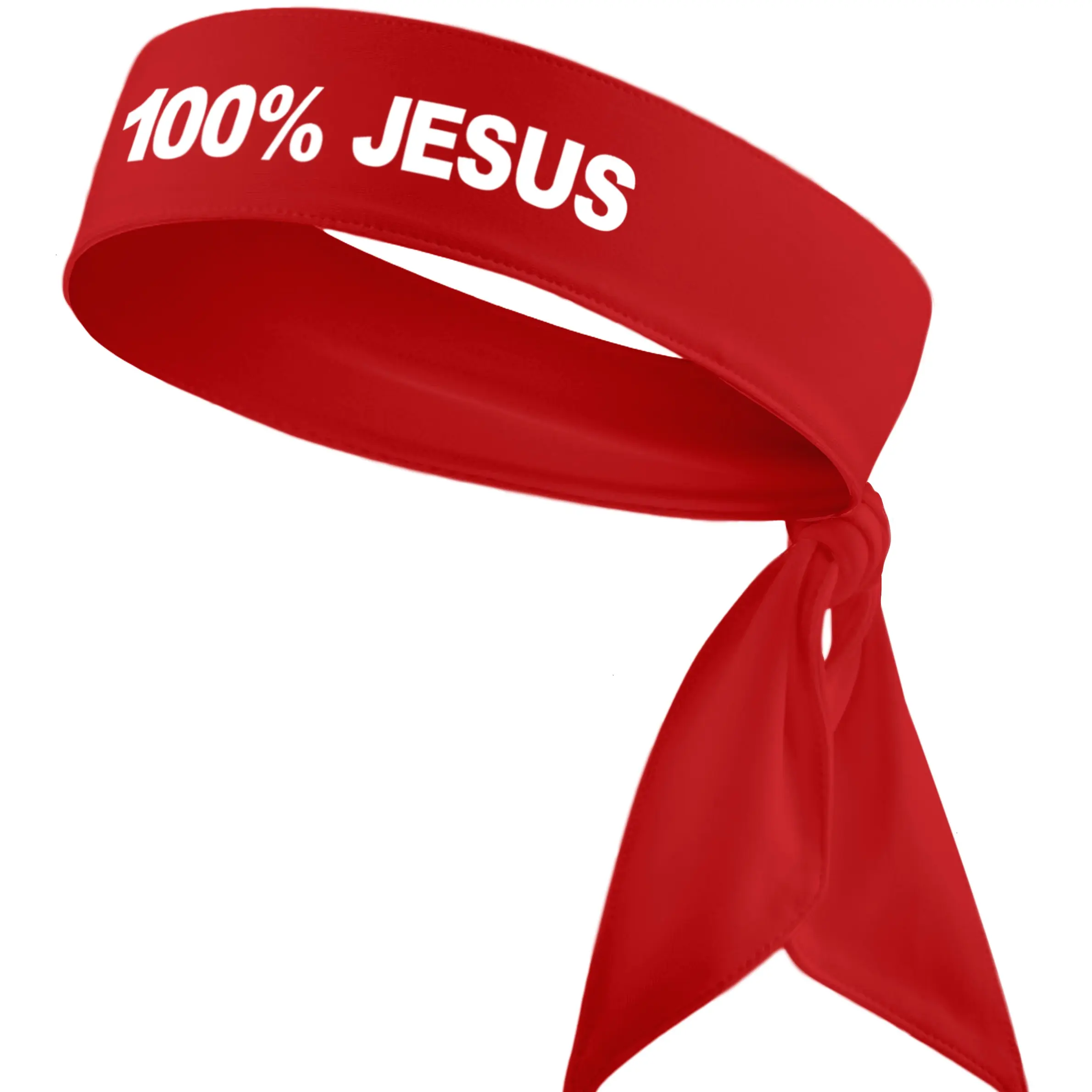 100% Jesus Headband - 100 Percent Jesus Sports Head Tie Headband Soccer Fútbol Football White Black Athletics Fitness Stretch Sweatband Ninja Tie Bandana - B3 U ATHLETICS