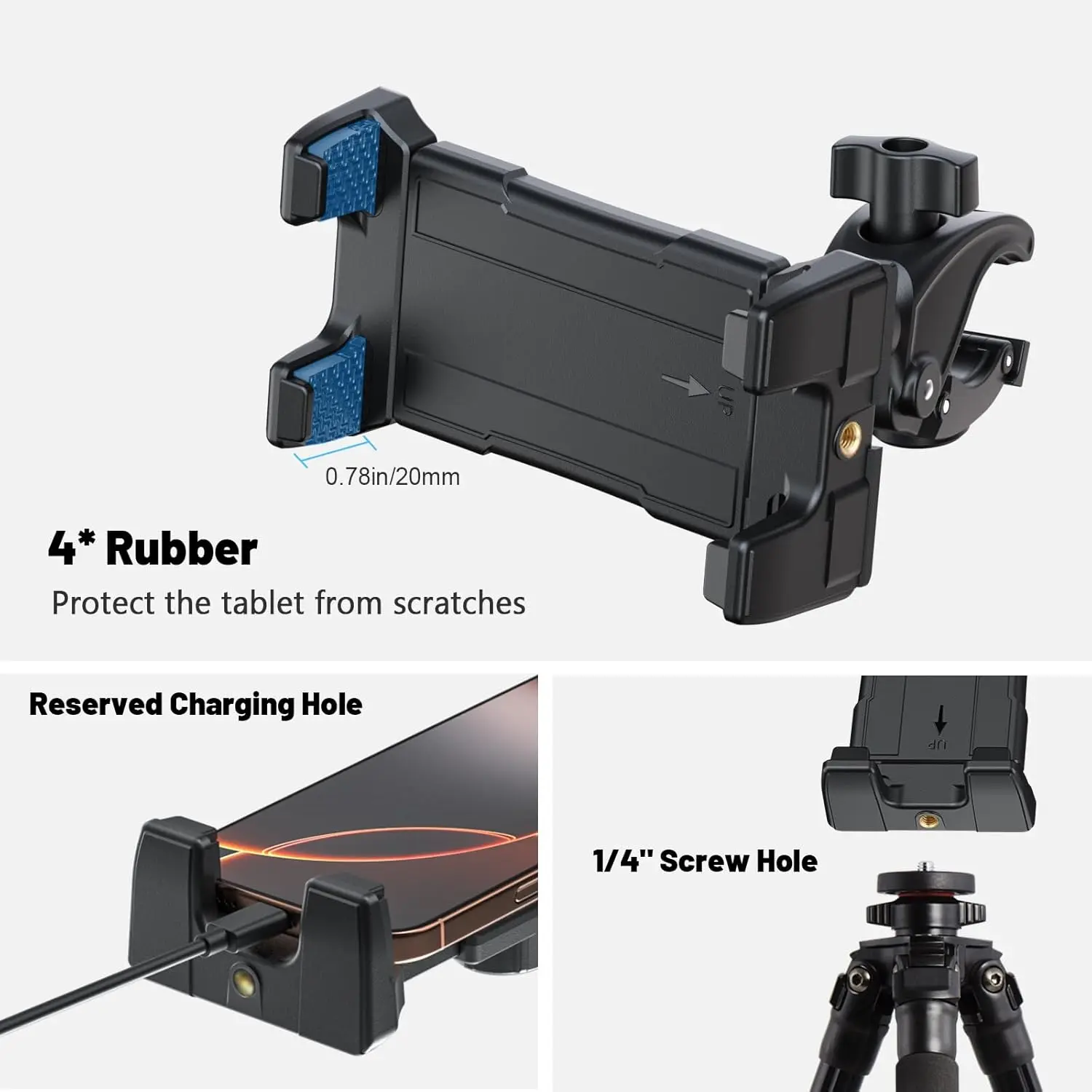 Elevate your workout or travel with the OHLPRO Tablet Microphone Holder. Perfect for iPad, Galaxy Tab, iPhone, and Fire HD 10. Compatible with 5-13inch devices, including iPad Pro 12.9 Air Mini. Ideal for treadmill handlebar, spinning bike, Peloton, stroller, and bicycle. Stay connected and organized on the go.